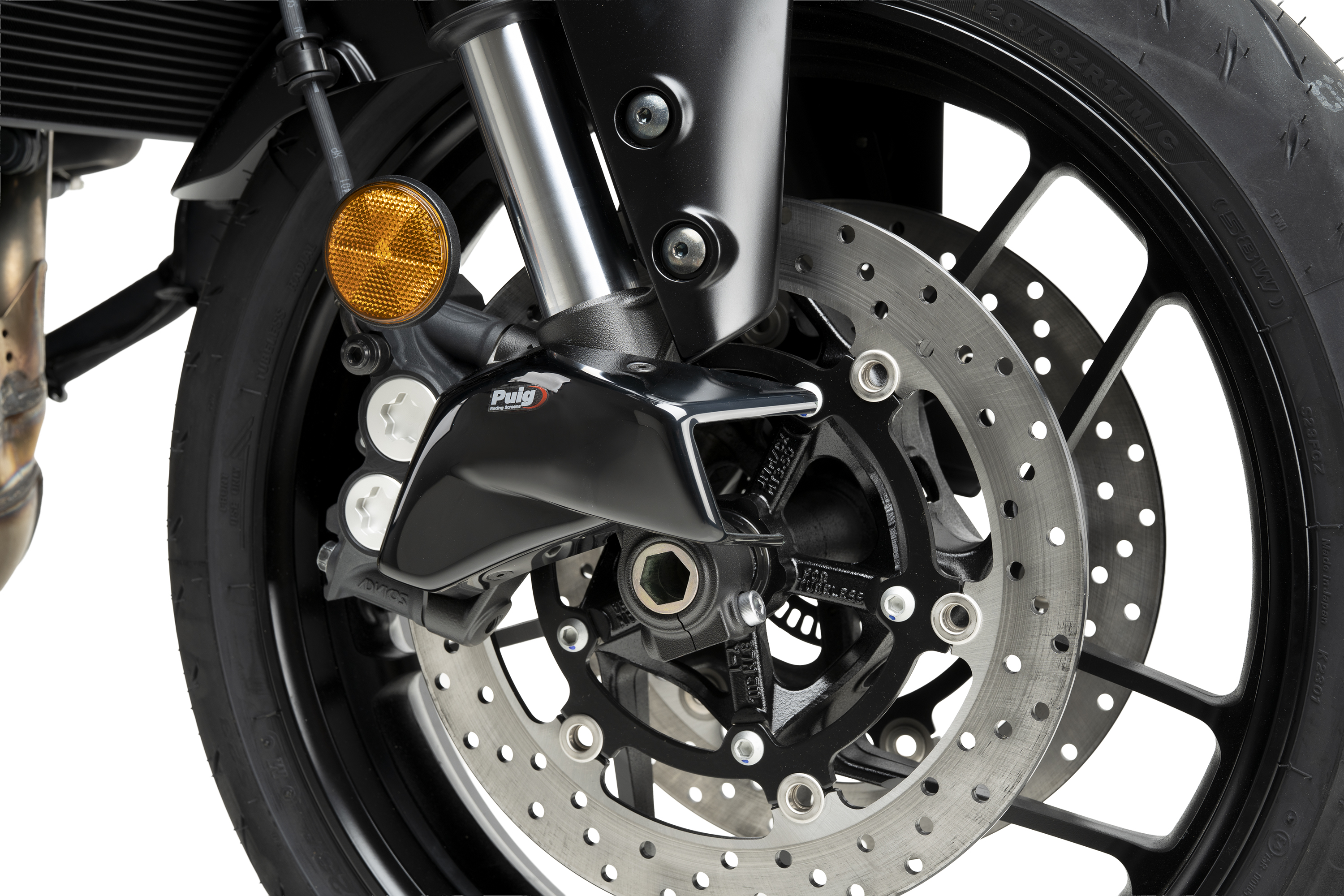 D’altra banda, fa unes setmanes vam presentar els conductes d’aire, desenvolupats per optimitzar el rendiment del sistema de frens, garantint una major seguretat i un tacte de frenada més constant fins i tot en condicions de màxima exigència. En aquesta ocasió, la Yamaha MT-09 estrena compatibilitat amb aquest component, que aconsegueix una reducció mitjana de fins a 10 ºC en la temperatura de les pinces de fre, fet que es tradueix en un funcionament més eficient i un millor rendiment del sistema de frenada.