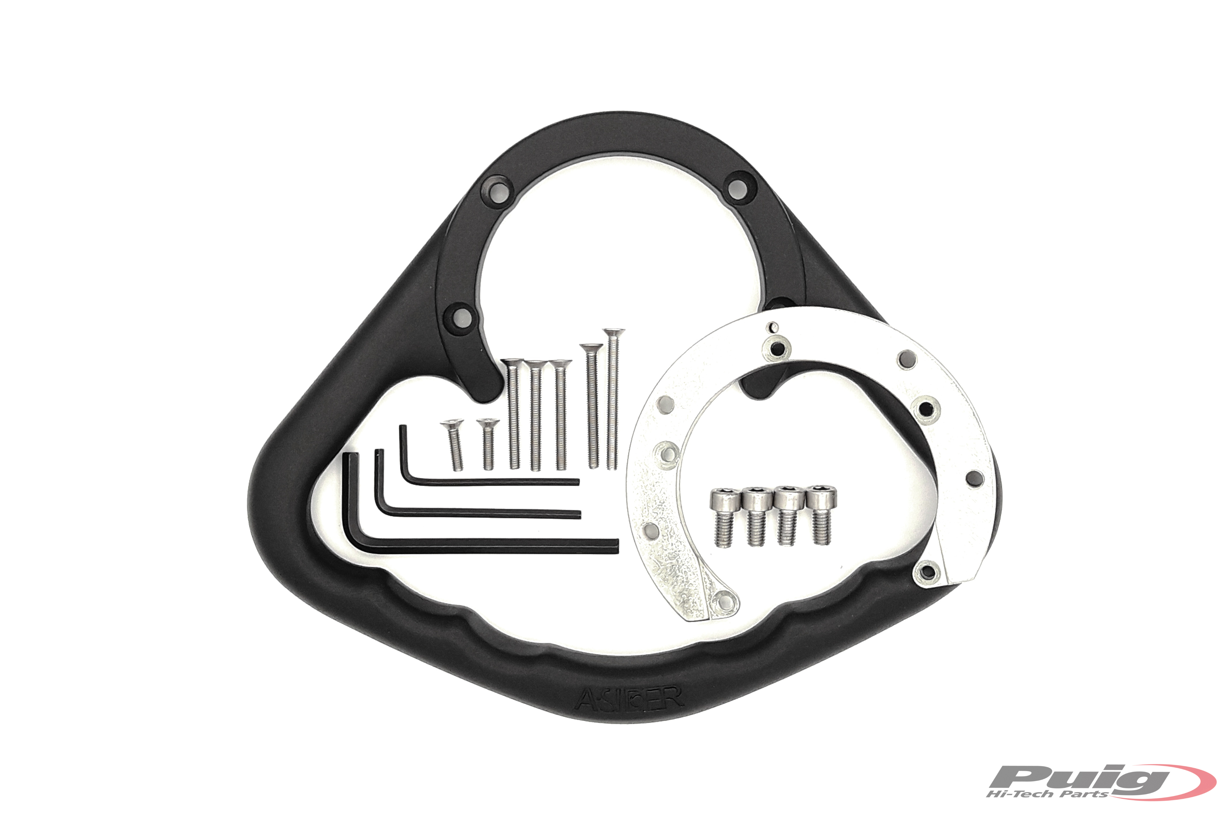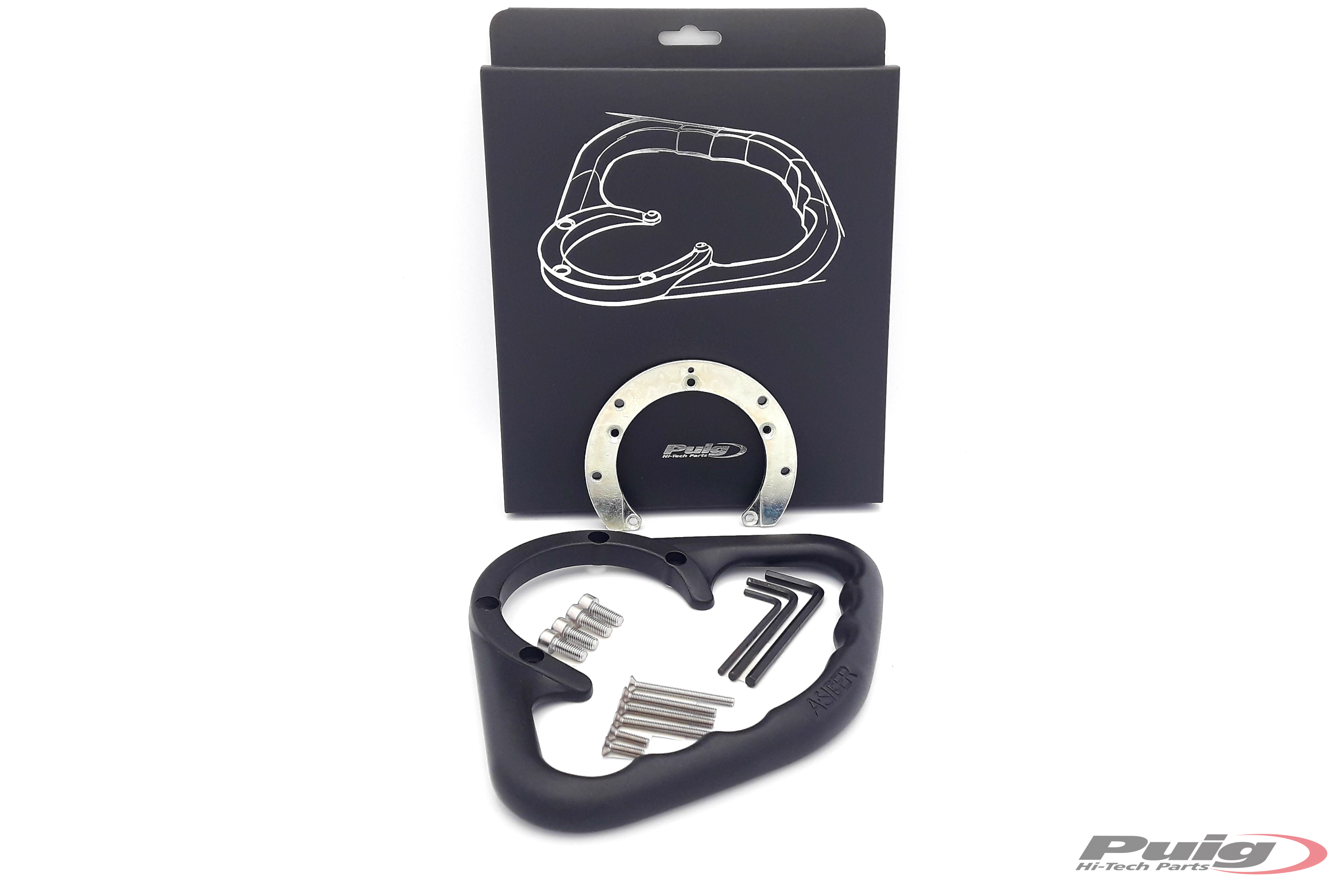 Els agafadors són fixats, mitjançant cargols, al tap del dipòsit de la moto. El model que millor encaixi amb el seu vehicle el determinarà el nombre de cargols necessaris per a la fixació al tap del dipòsit. És recomanable que es comprovi el nombre de cargols per a la fixació de la peça en la seva moto abans d'efectuar la compra del producte