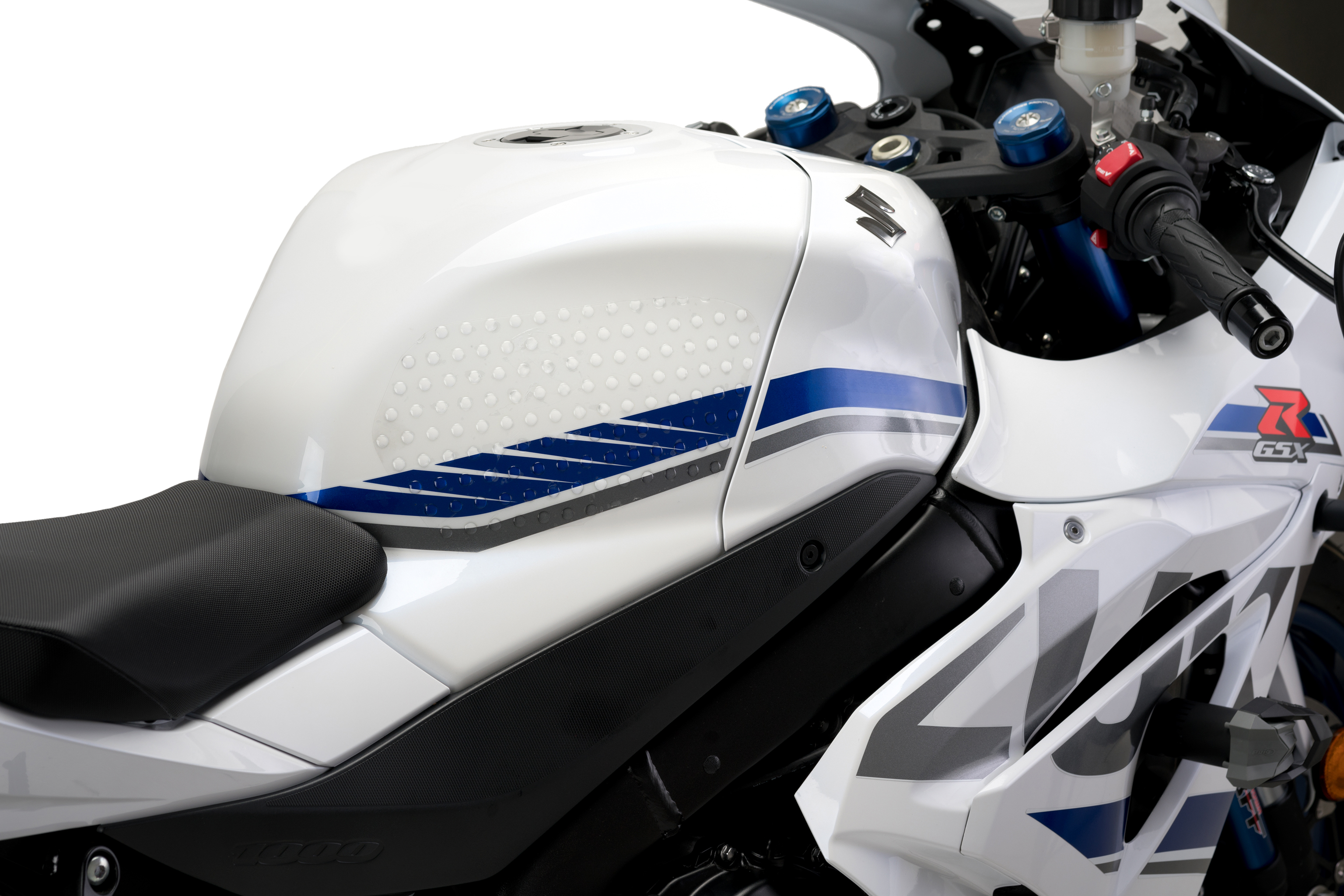 La làmina adhesiva amb relleu de Puig està concebuda per a protegir aquelles parts de la moto externes més propenses a patir desgast i ratllades produïdes per l'ús habitual del pilot o del seu acompanyant. Està disponible amb tres tipus de disseny: làmina llisa (en color símil carboni); làmina amb relleu (en color símil carboni o transparent); i en format de joc de bumbs. En qualsevol d'ells, a més de la seva aportació a la personalització de la moto, el pilot comptarà amb un millor adherència a la zona on decideixi instal·lar-les. Les seves mesures són 250 x 350 mm.