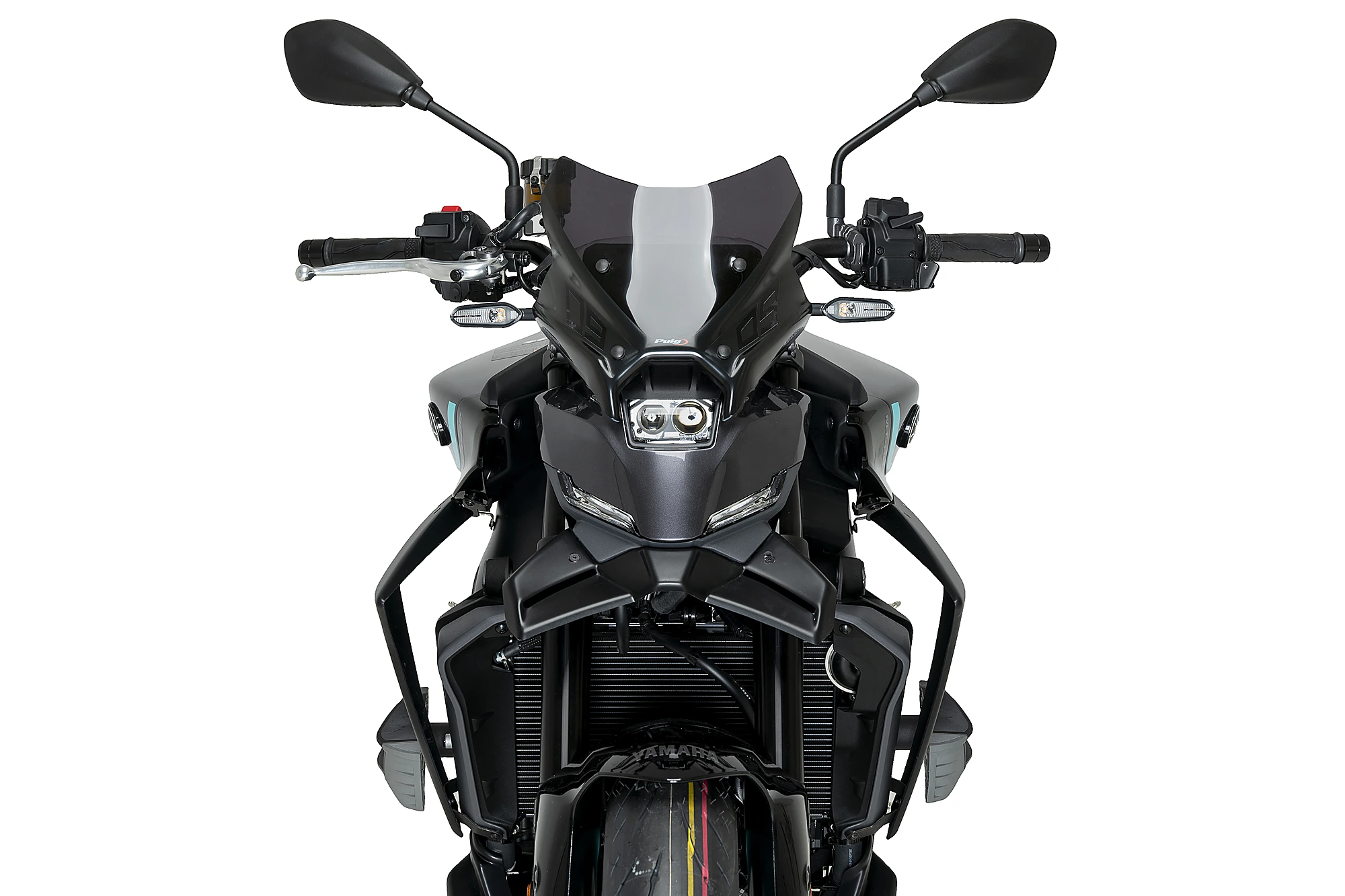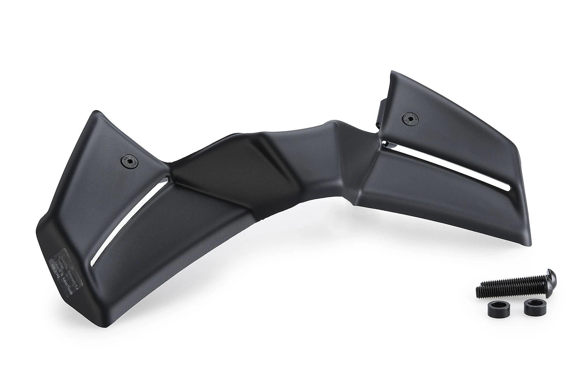 L’aleró frontal Naked per a la nova Yamaha MT-09 ha estat dissenyat per reforçar l’agressivitat del frontal de la moto, alineant-se amb les línies marcades i anguloses del disseny original. En combinació amb el nou far de la MT-09, aquest aleró aporta un conjunt més afilat, aerodinàmic i esportiu, ressaltant l’estètica competitiva de la motocicleta.