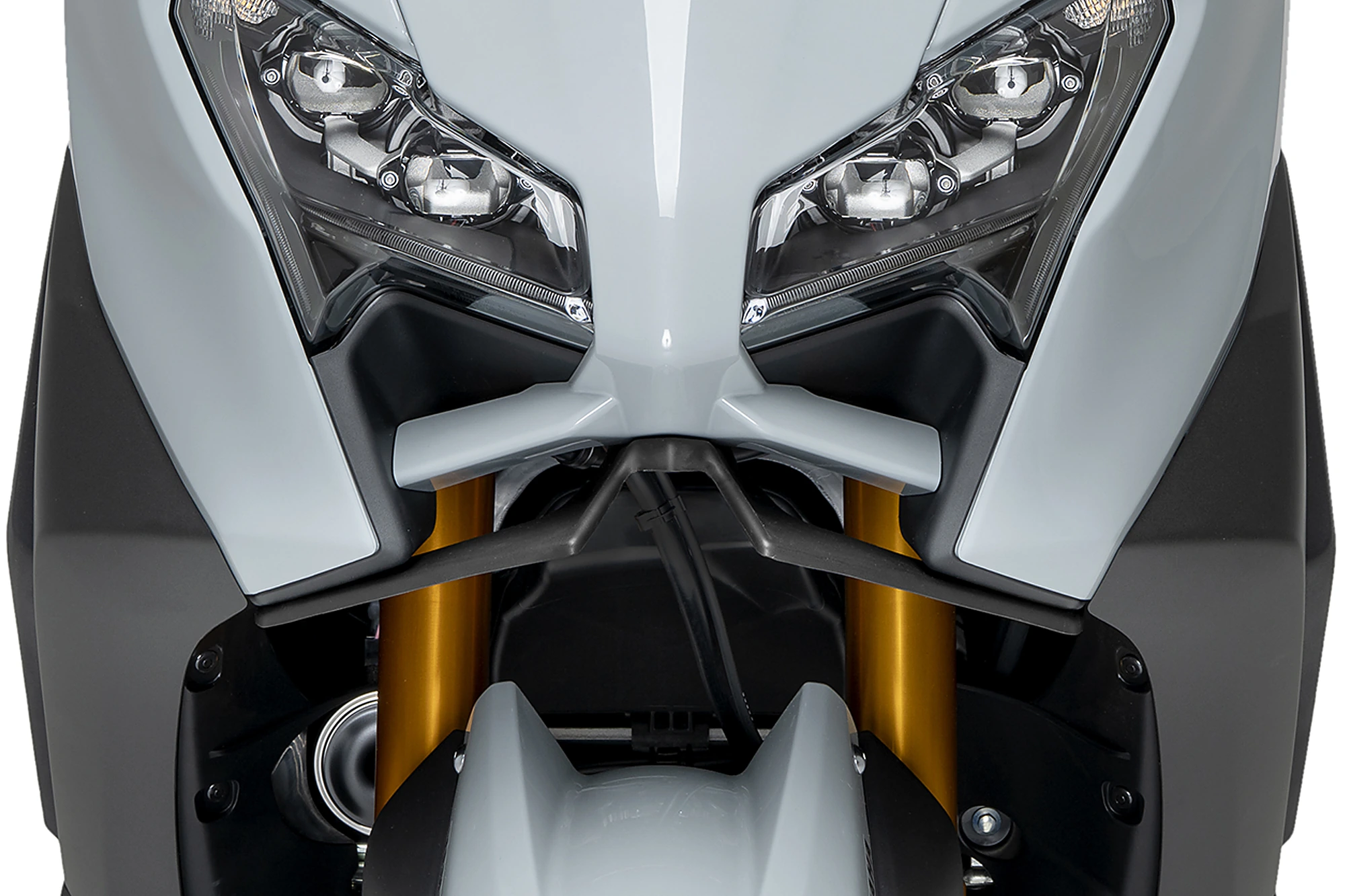 Dissenyat a Barcelona amb les més innovadores tecnologies, el nou aleró frontal Naked està fabricat en ABS negre mat de 3 mm de gruix, material altament resistent a qualsevol tipus d'impacte, que proporciona al teu moto aquest look agressiu al mateix temps que elegant que busques.