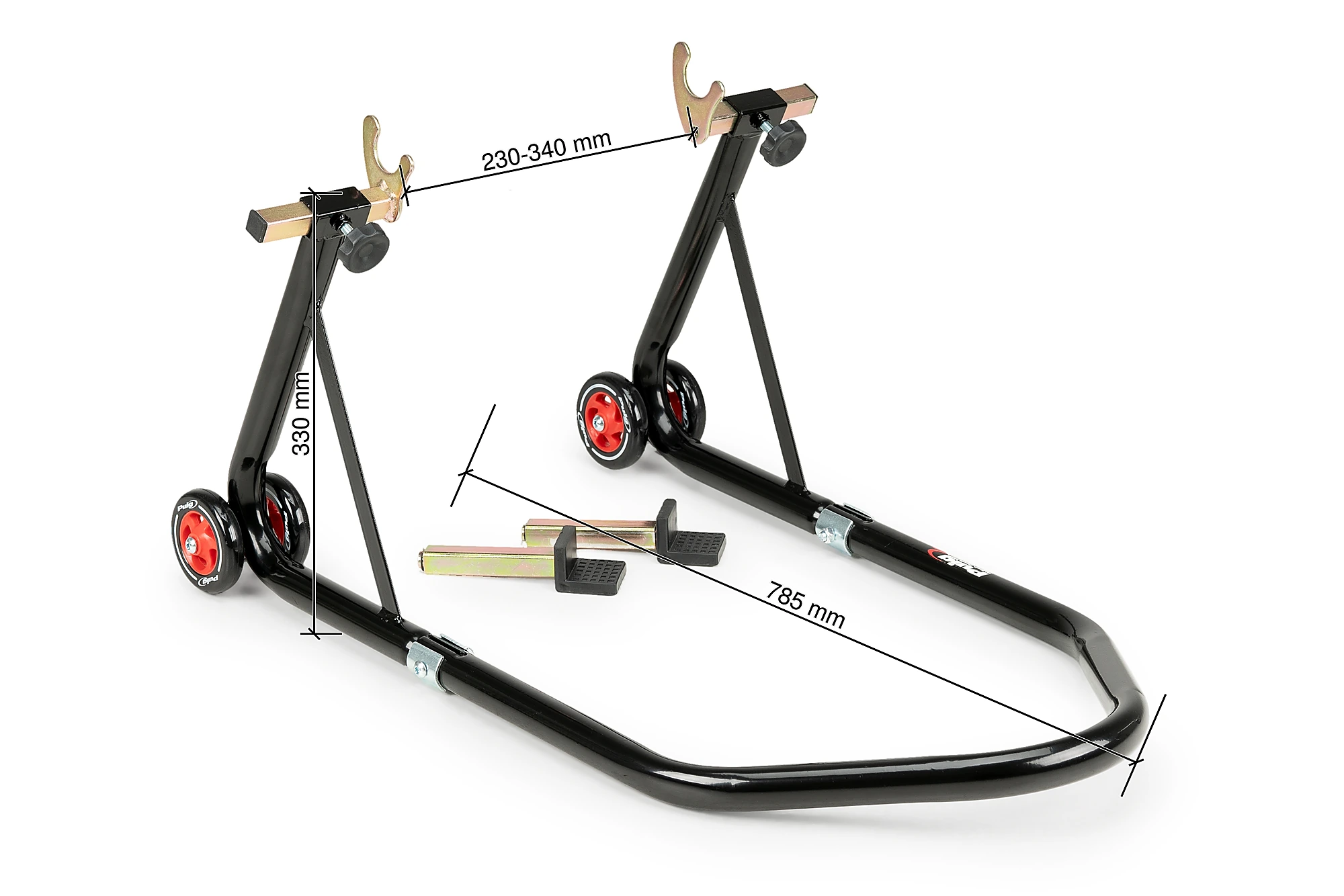 Fabricat en acer i pintat amb pintura Epoxi negra, útil per a tots aquells models amb un basculant convencional, que et permetrà tenir la teva moto sempre a punt. A més podràs utilitzar-lo com fixació per al vehicle.