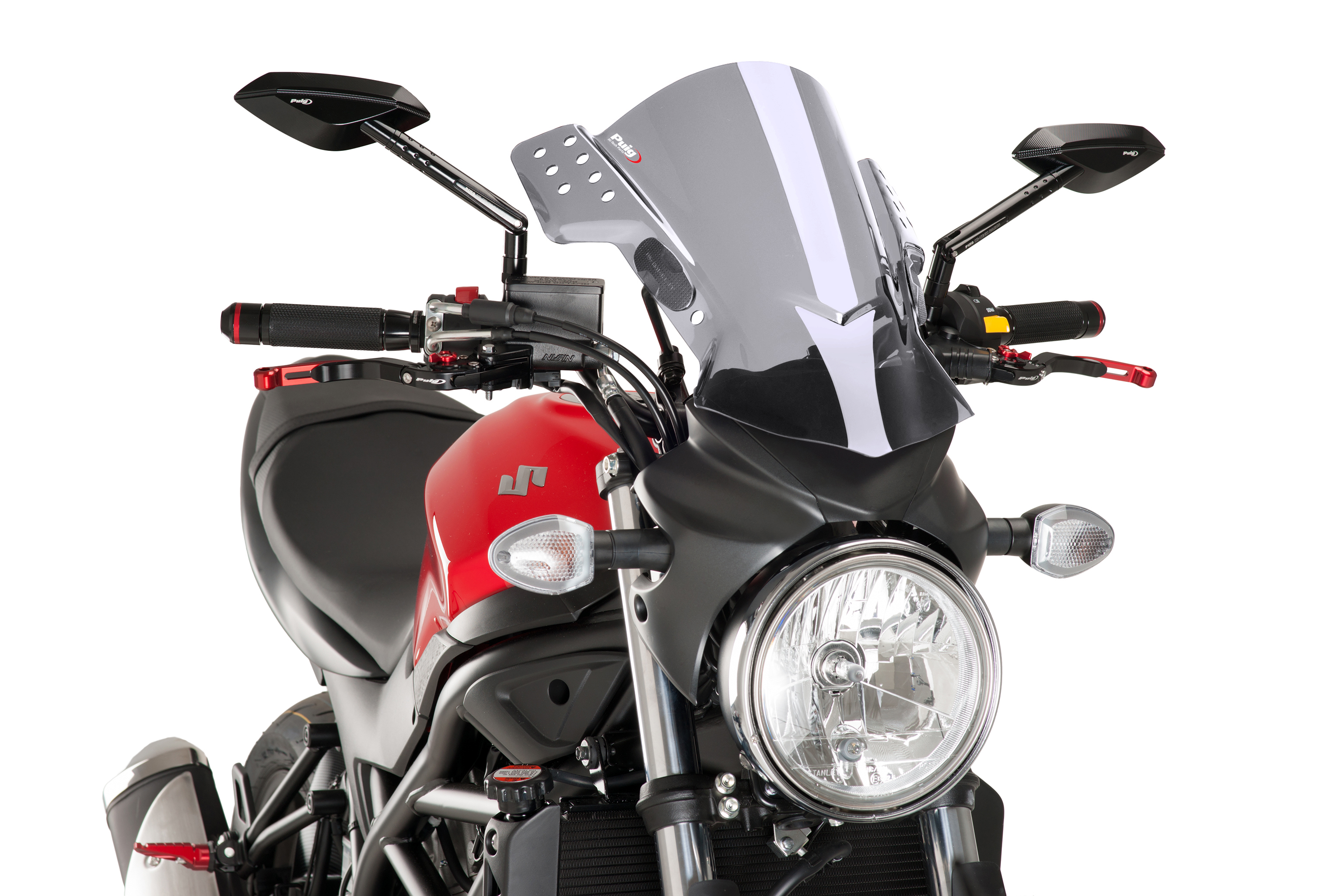 Dóna-li al teu moto un toc més agressiu i esportiu amb el carenabris universal Rafale de Puig. Especialment pensat per a models de motocicleta NAKED permet millorar l'aerodinàmica i protegeix del pilot contra el vent.