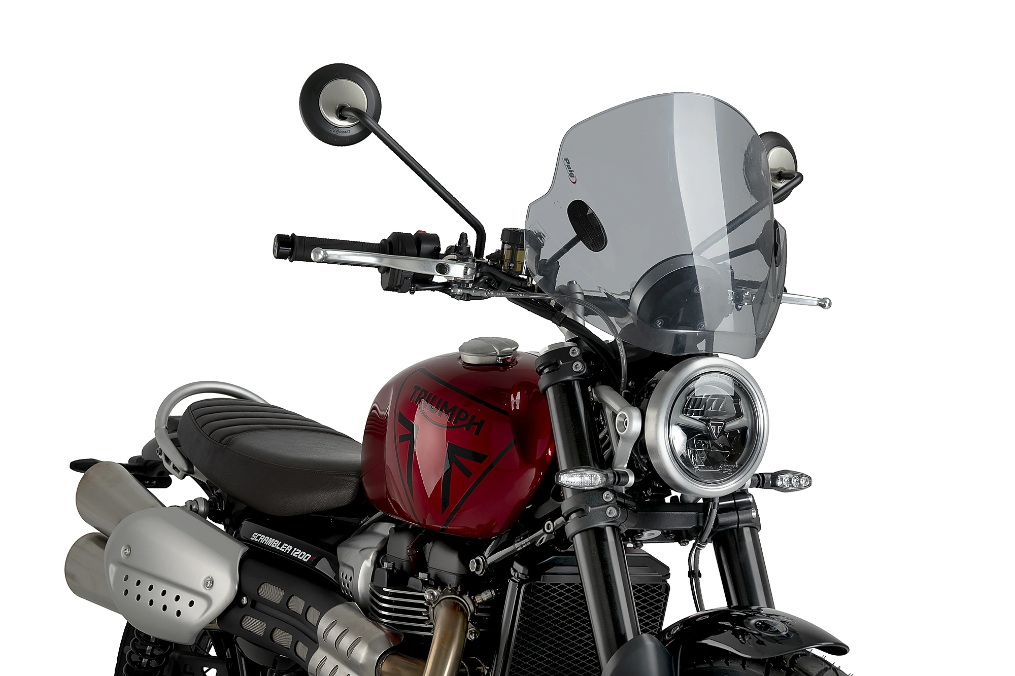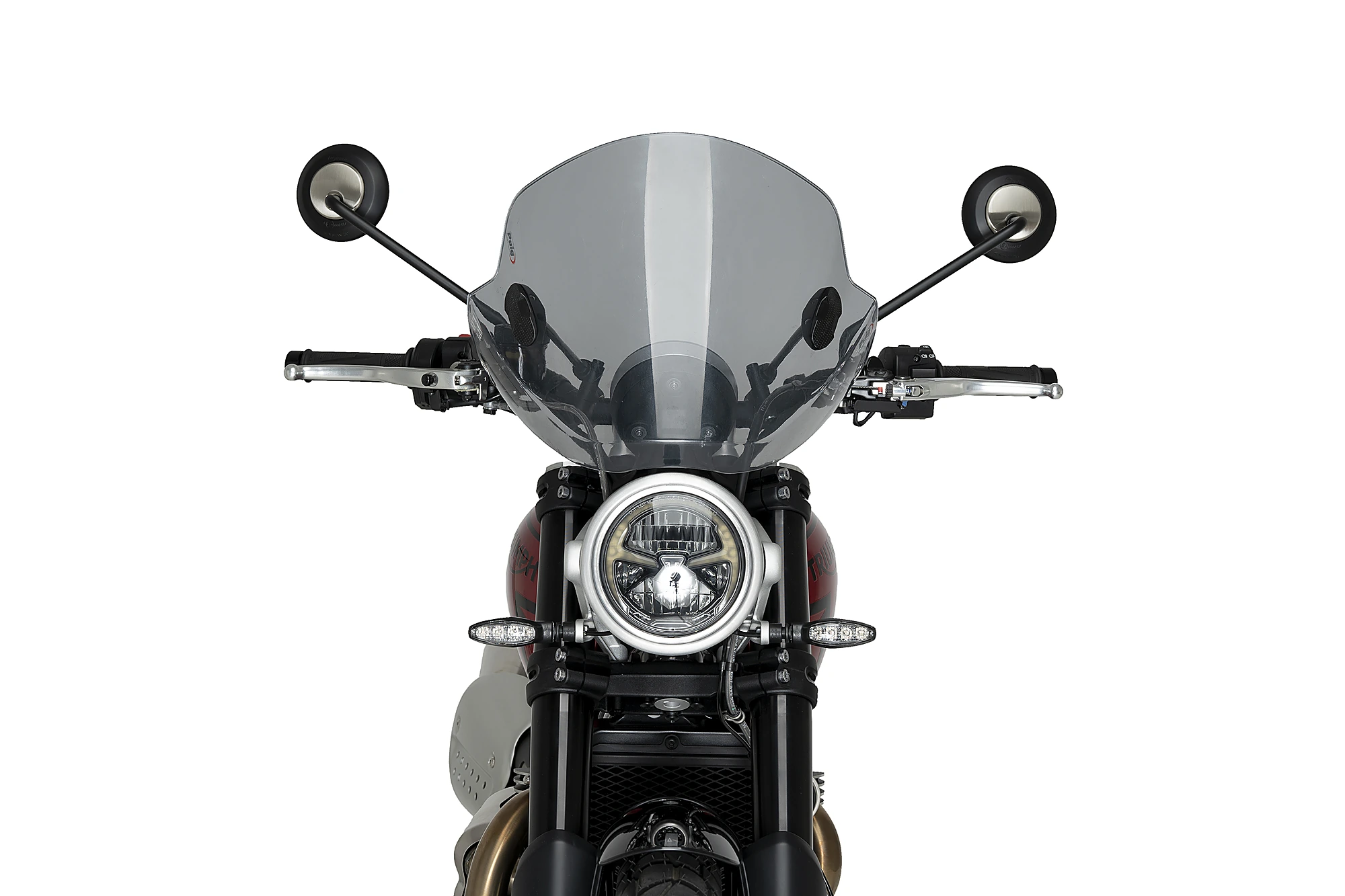 Aquest carenabris universal millorarà notablement l'aerodinàmica, protegint el conductor del vent sense haver de renunciar al disseny de la teva moto. El model per fars no rodó Trend es fabrica en policarbonat de 3 mil·límetres, prevalent sempre la qualitat i oferint un plus en seguretat enfront de l'impacte d'objectes. Es tracta d'un producte que compta amb certificat d'homologació ABE 38188.