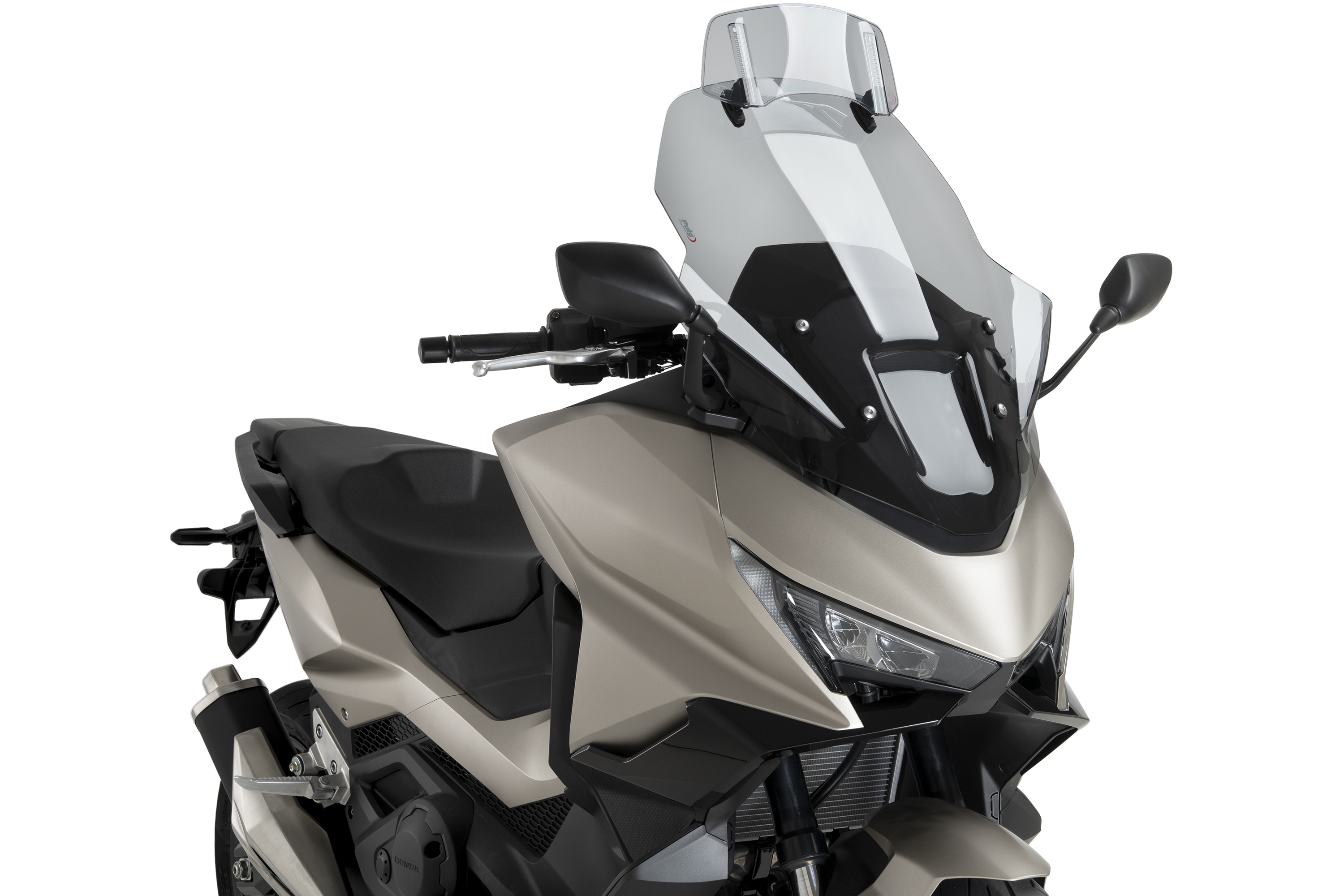 La pantalla Touring amb visera de Puig incorpora un avantatge significatiu: la visera és ajustable manualment i sense necessitat d'eines. Aquesta permet una regulació en alçada de fins a 6,5 cm i en inclinació, adaptant-se així a les preferències de cada usuari. Aquesta personalització permet optimitzar la posició per reduir la pressió del vent, el soroll i les turbulències.