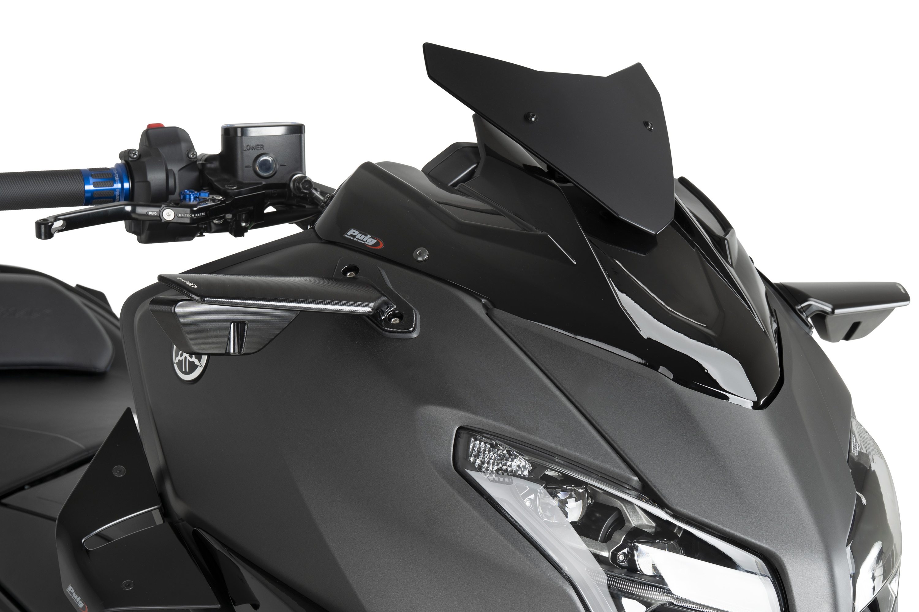 Fabricada en ABS termoformat d’alta qualitat, ofereix una estructura lleugera, resistent i amb un acabat impecable. El seu disseny elimina la gran visera OEM destinada a protegir el quadre d’instruments del sol, aconseguint una imatge més neta, moderna i esportiva que manté la possibilitat de muntar-se amb qualsevol pantalla compatible amb aquesta moto, així com amb el mecanisme elevador electrònic del model TECH MAX.