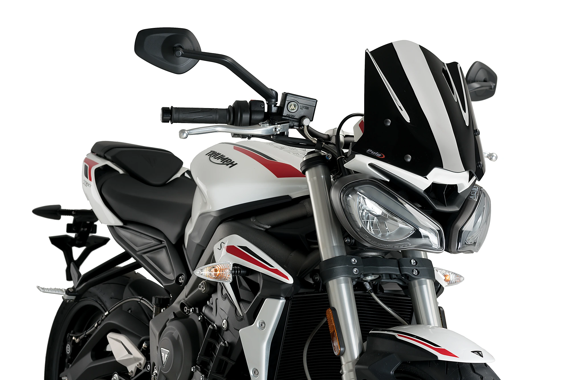 Aquest carenabris Sport és perfecte si busques mantenir el disseny impecable de la teva Triumph Street Triple S/R/RS mentre millora la seva resistència a l'aire. La seva estètica es fusiona amb les línies minimalistes i senzilles d'aquesta naked elegant, convertint-la en el teu millor companya de viatge. Gràcies a les seves formes, redueix l'impacte directe de vent a la zona de el tors i els braços, oferint una conducció més confortable i menys esgotadora. L'equilibri ideal entre funcionalitat i disseny esportiu.