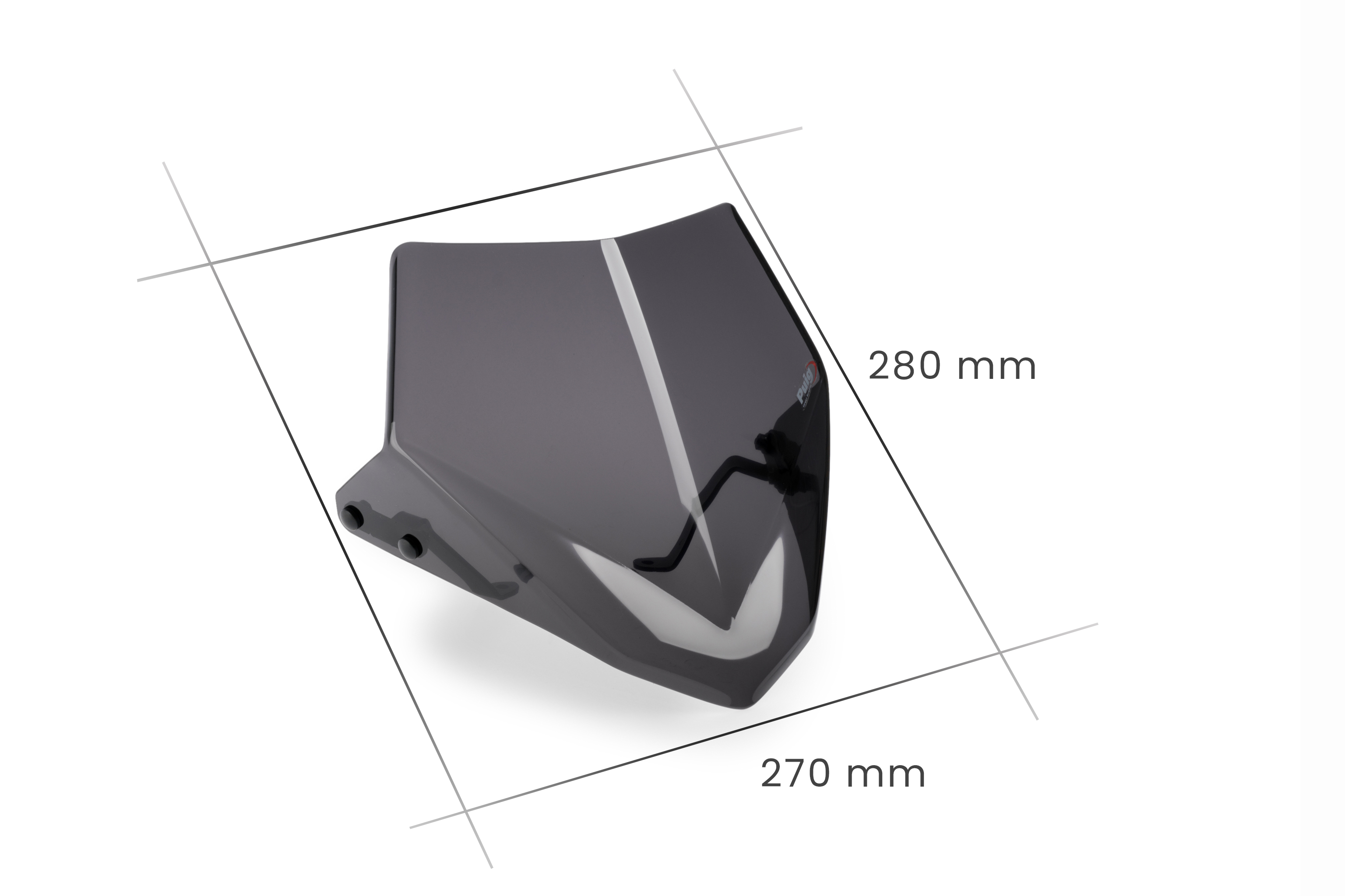Amb unes mides de 270 mm d'amplada per 280 mm d'alçada, la cúpula NG Sport de Puig s'adapta a la moto per mitjà d'uns suports metàl·lics de gran qualitat acabats en un color negre texturat discret. Lleugers i resistents tenen un disseny d'acord amb l'estètica del conjunt.
