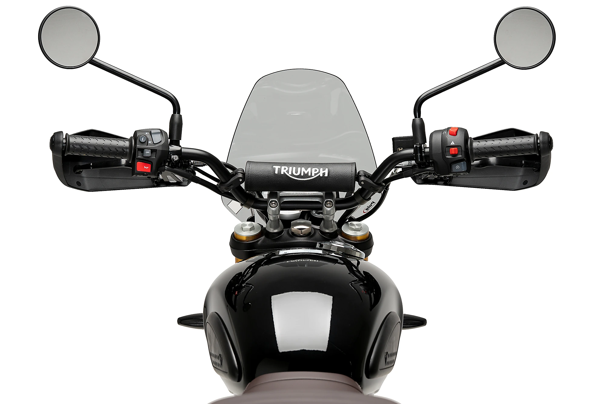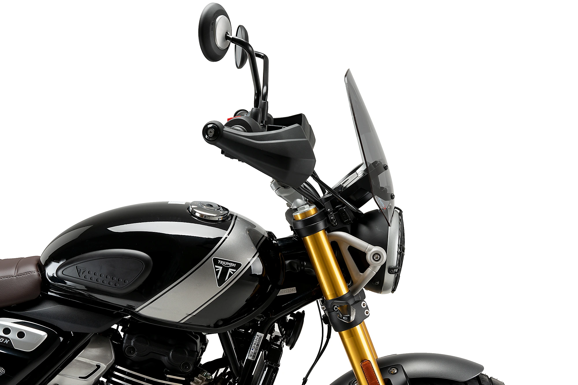 Complementant les línies del dipòsit de la TRIUMPH Scrambler 400X, el disseny de formes arrodonides del carenabris no només preserva l'estètica de la moto, sinó que també conserva la seva excel·lent capacitat aerodinàmica.