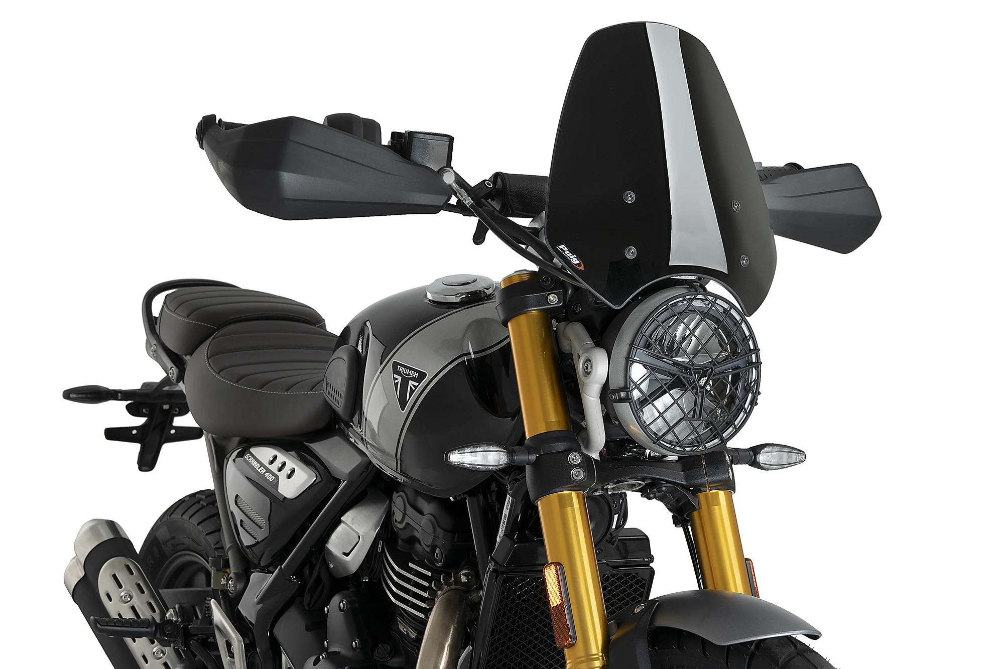 Seguint les línies clàssiques de la Scrambler 400X, el carenabris NG Sport dissenyat per Puig és l'opció ideal per combinar estètica i millora en la protecció aerodinàmica.
