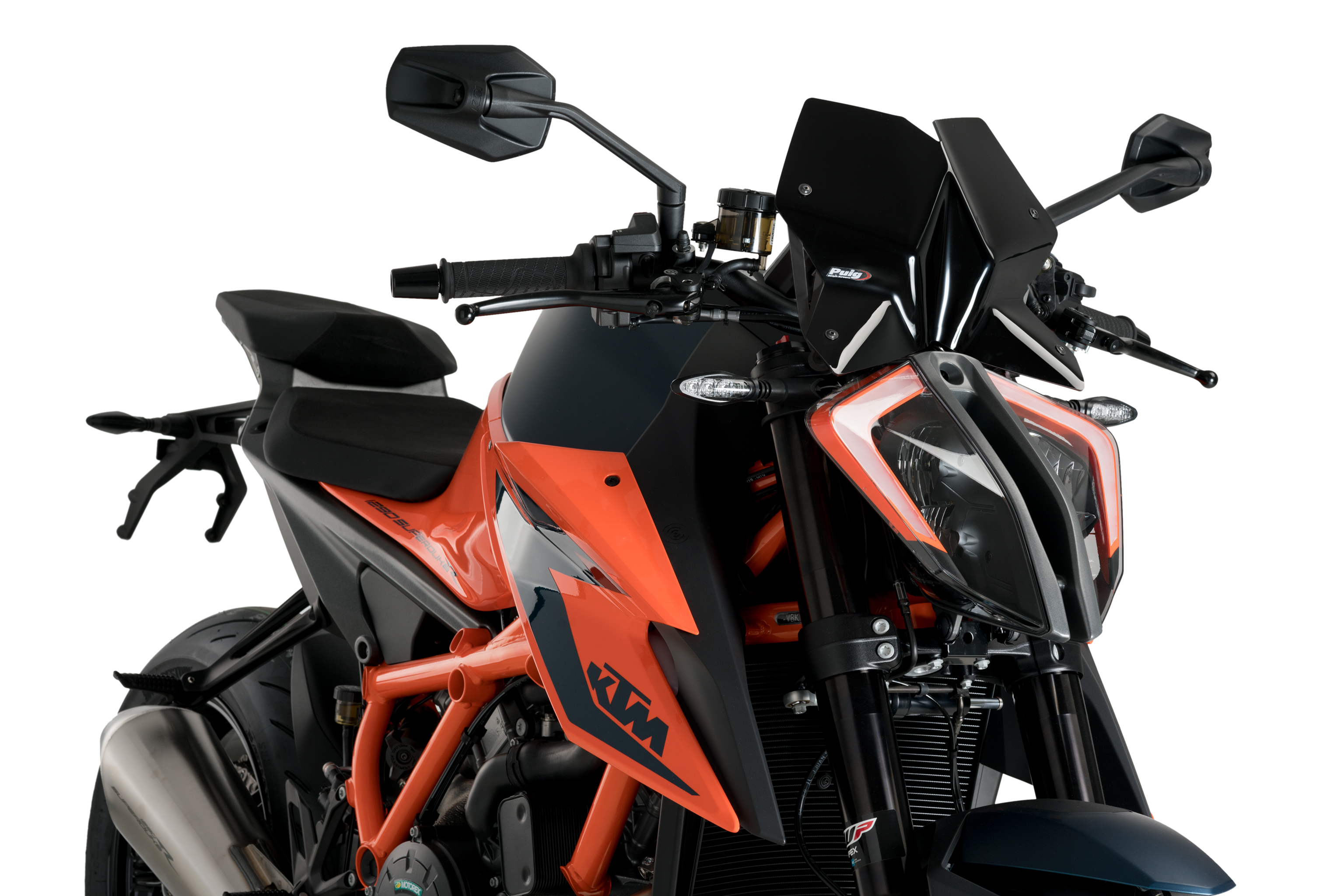 Les naked de gran cilindrada són d'allò més variades i personalitzables. Amb aquest objectiu, Puig ofereix una gran varietat de colors disponibles per a donar-li el toc definitiu al teu KTM 1290 SuperDuke R: fumat, fumat fosc, transparent, negre o taronja.
