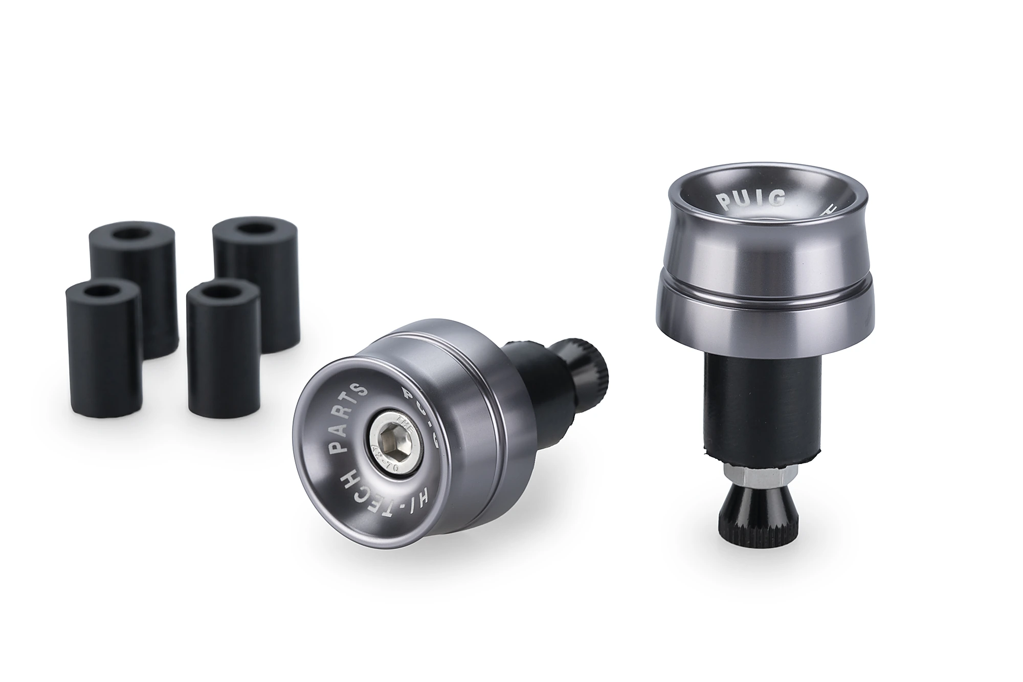Mecanitzats a partir d’un bloc d’alumini i anoditzats en set colors diferents.