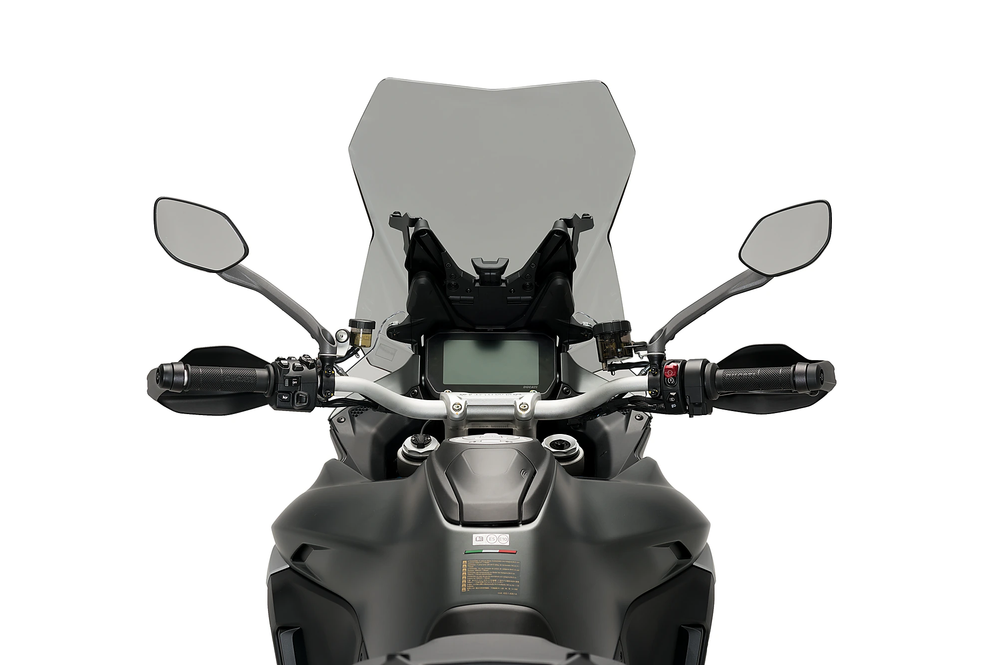 La nova cúpula Touring de Puig per a la Ducati Multristada V4 2021 és una pantalla amb disseny depurat i estudiada aerodinàmicament per protegir de manera efectiva el pilot durant la ruta sense alterar l'elegant disseny del model de motocicleta del fabricant italià.