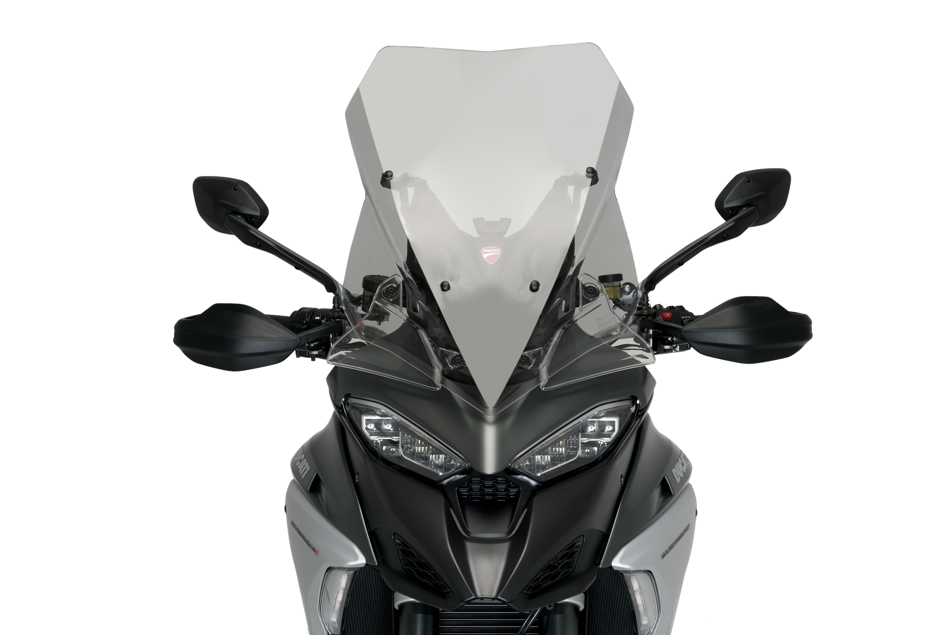 La nova cúpula Touring de Puig per a la Ducati Multristada V4 2021 és una pantalla amb disseny depurat i estudiada aerodinàmicament per protegir de manera efectiva el pilot durant la ruta sense alterar l'elegant disseny del model de motocicleta del fabricant italià.