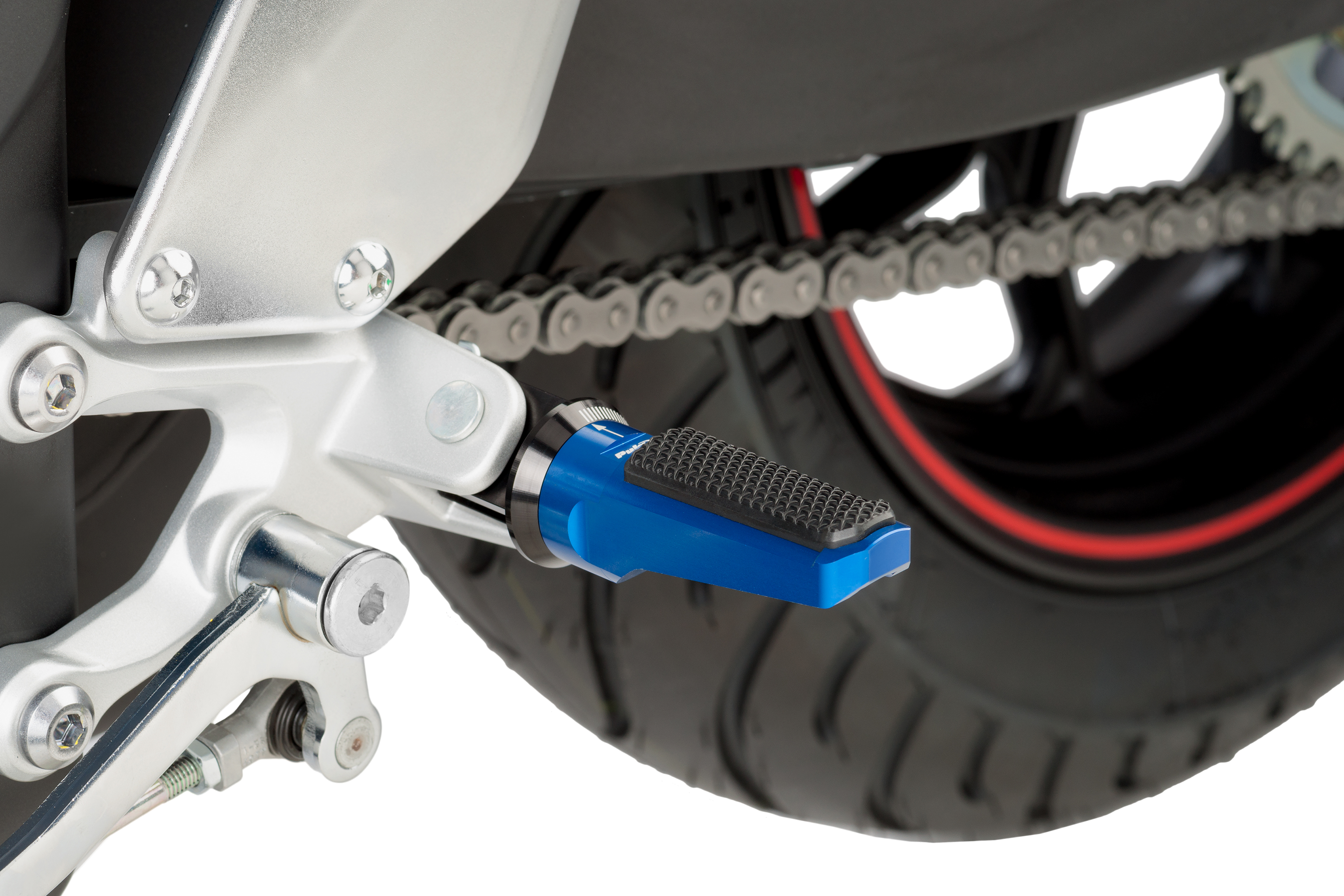 Les estreps sport de Puig són ideals per personalitzar l'estil de les motos naked. El seu atractiu disseny i la seva fabricació en alumini anoditzat les fa ressaltar de forma notable sobre la moto, la presentació guanya en imatge esportiva.