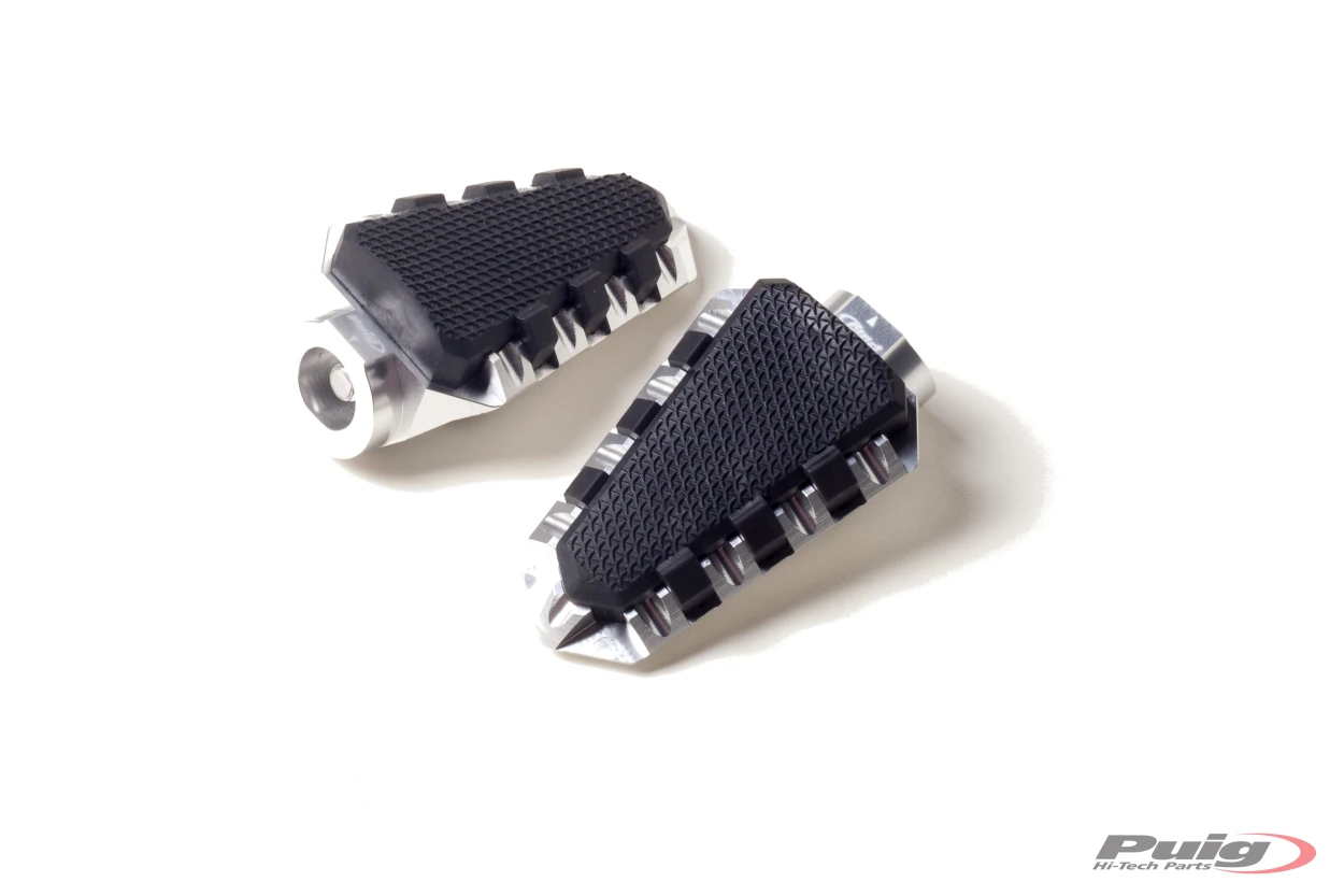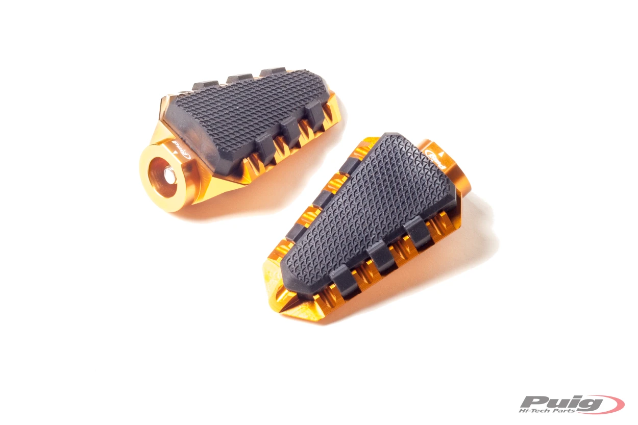 Les estreps trail de Puig estan especialment dissenyades per a motos tipus Tourer i ofereixen el màxim adherència i confort al conductor en qualsevol circumstància gràcies a la goma instal·lada a la zona de contacte de la bota. Aquestes estreps estan realitzades en alumini anoditzat i es distingeixen pel seu disseny modern i esportiu, ideat per convertir-se en el complement ideal per a les motos més versàtils, que reben al seu torn un atractiu toc de personalització.