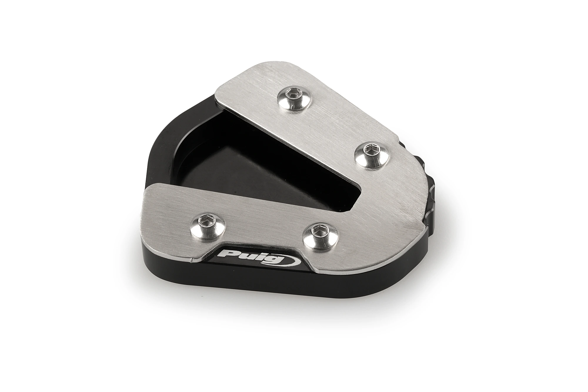 Dissenyada per prevenir possibles caigudes de la moto mentre es troba estacionada. Aquesta peça, amb una base un 100% més àmplia respecte a l'original permet estacionar en superfícies toves o irregulars amb més seguretat. Es tracta d'una peça mixta, amb una part en acer inoxidable i una altra mecanitzada a partir d'un bloc d'alumini amb anoditzat posterior. Aquests materials aporten una gran resistència mantenint un pes reduït (110-160g segons model). Aquest producte evitarà que la motocicleta pugui patir qualsevol contratemps quan no està en ús.
