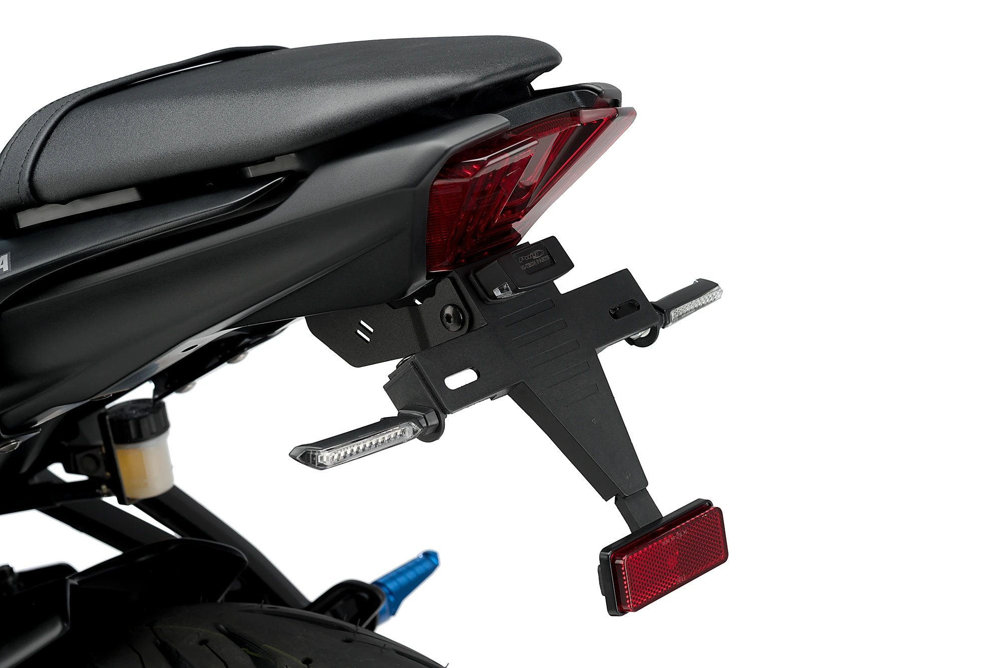 Substitueix el portamatrícules original de la teva moto pel suport portamatrícules de Puig, que, gràcies a la seva ubicació elevada, proporciona un aspecte esportiu a la teva motocicleta. El conjunt combina peces d’acer amb acabat en pintura epoxi i elements de poliamida, aconseguint una notable reducció de pes en comparació amb el suport original.