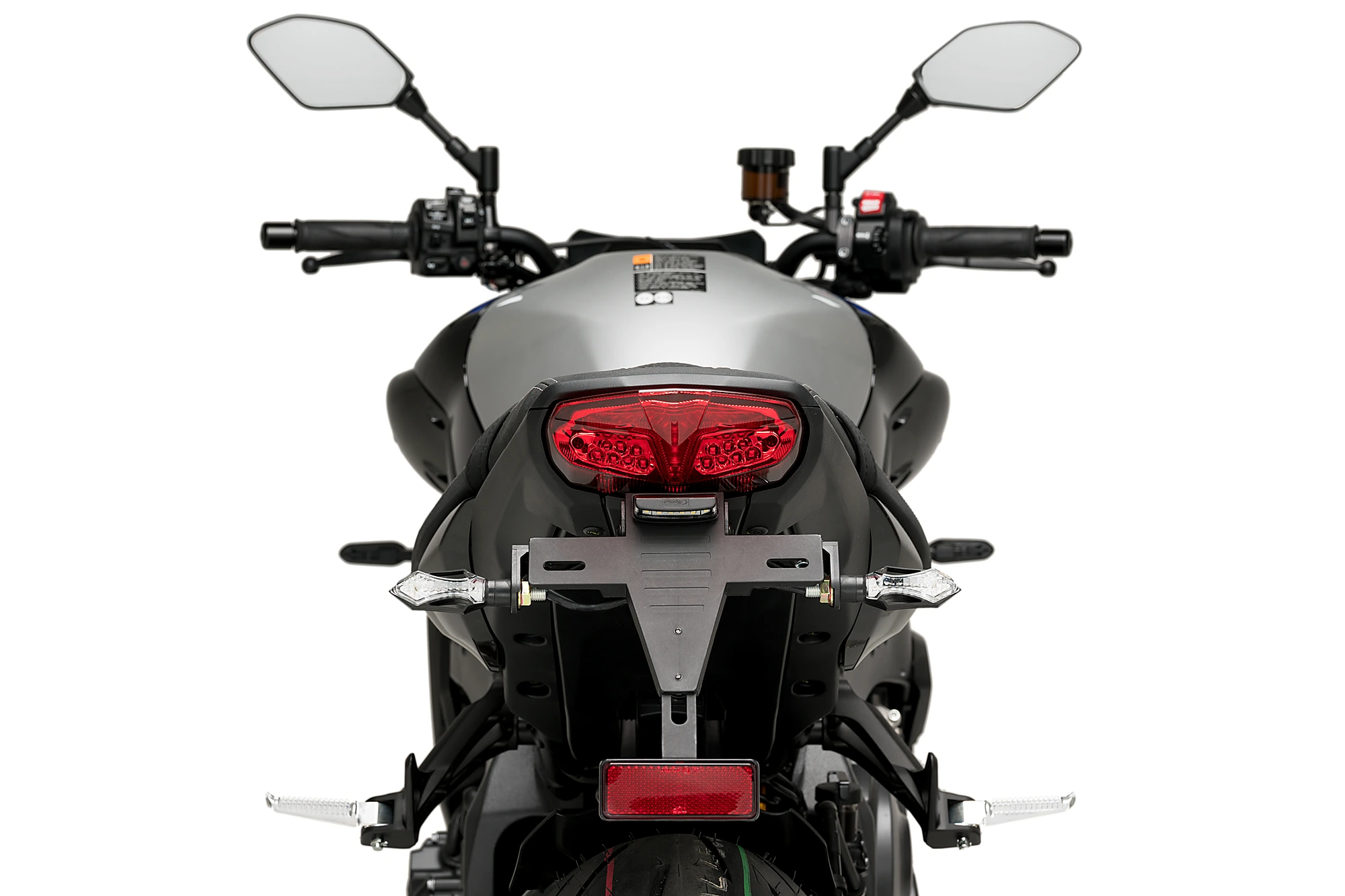 Substitueix el portamatrícules original de la teva moto pel suport portamatrícules de Puig, que, gràcies a la seva ubicació elevada, proporciona un aspecte esportiu a la teva motocicleta. El conjunt combina peces d’acer amb acabat en pintura epoxi i elements de poliamida, aconseguint una notable reducció de pes en comparació amb el suport original.