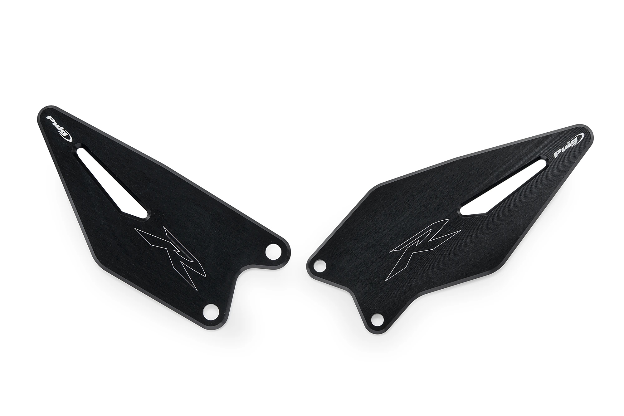 Aquestes plaques estan dissenyades per protegir el taló del pilot de possibles cops amb components mòbils de la moto, com la cadena o l'escapament. A més, ajuden a evitar el desgast excessiu del calçat, resguardant la zona dels peus del contacte continu amb aquestes parts, assegurant així una conducció més segura i còmoda.