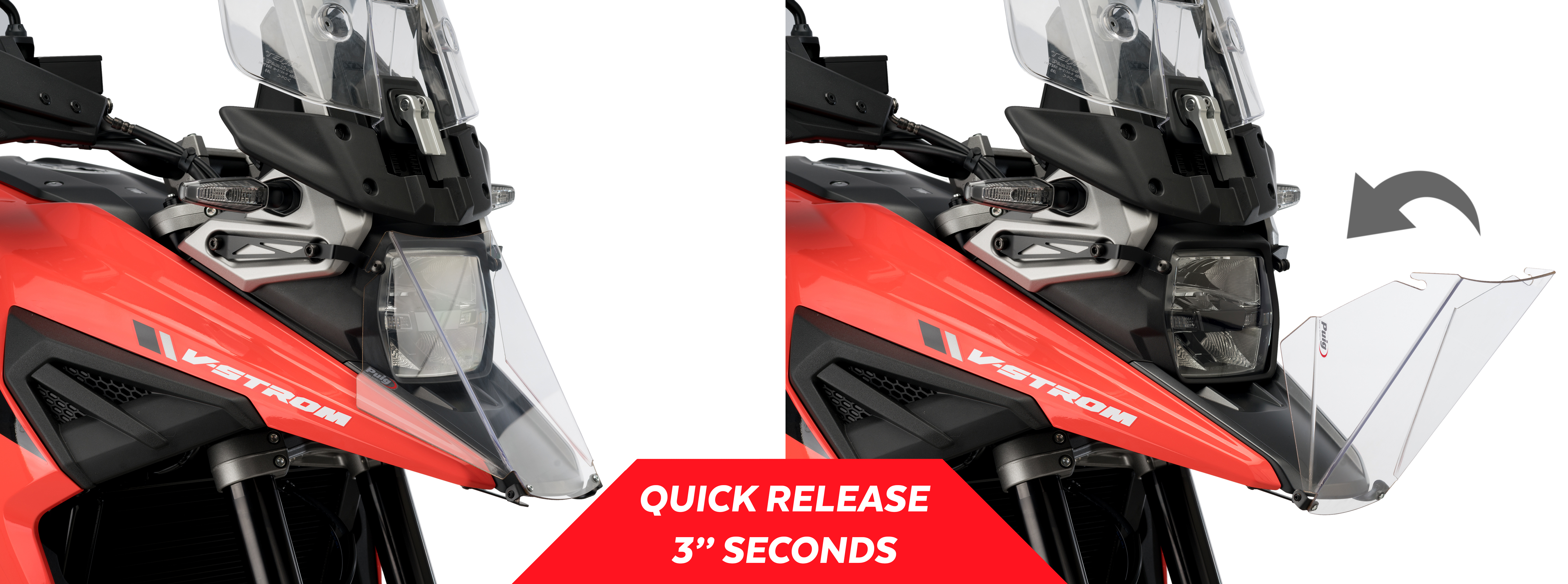 Protector de far per la teva Suzuki DL1050 V-Strom, de línies simples i discretes per una protecció invisible de la teva moto tant si fas carretera com offroad. El disseny avantguardista aporta un canvi d’estètica donant un aspecte més aerodinàmic i agressiu.