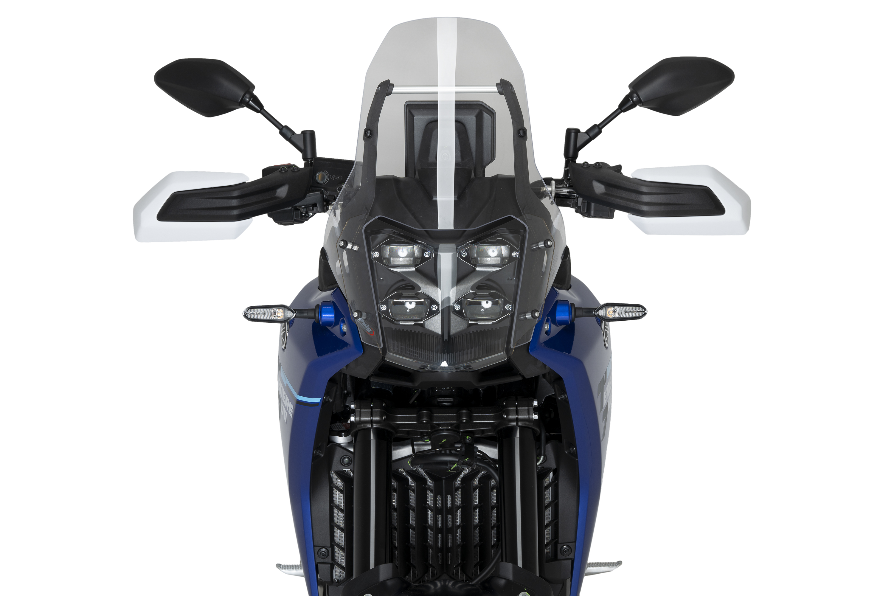 El protector, fabricat en policarbonat irrompible amb tractament antiratllades, segueix fidelment les línies marcades i minimalistes de la nova Ténéré 700, amb l’objectiu de protegir eficaçment la zona del far sense interferir en el disseny original de la moto. La seva transparència i adaptació al frontal fan que sigui pràcticament invisible a la vista, mantenint intacta la identitat visual de la moto.