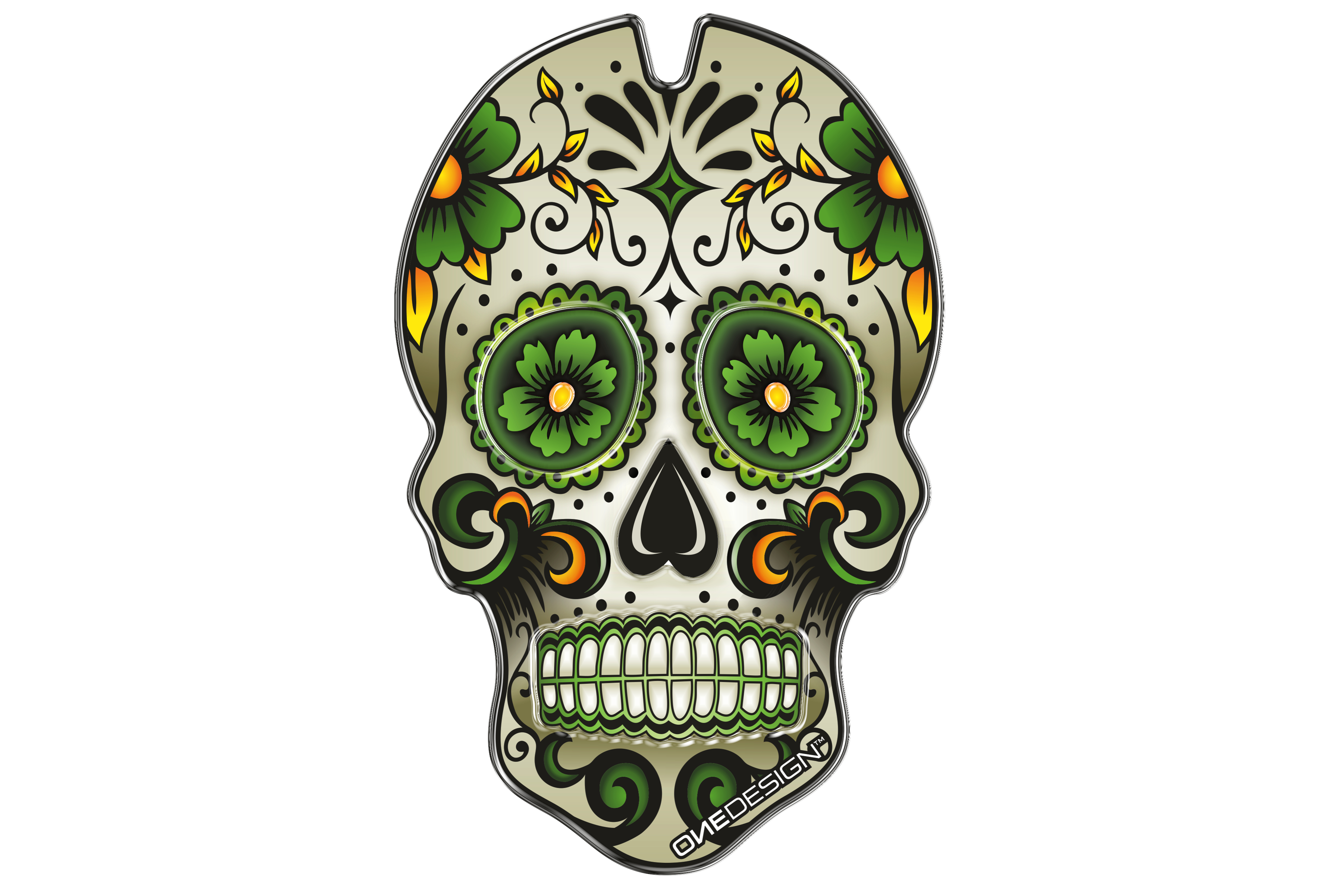 Aquesta calavera blanca en tons vermellosos i taronges li donarà el toc modern i juvenil al teu dipòsit però també el mantindrà com el primer dia. Gràcies a la seva fabricació en plàstic flexible d'alta qualitat podràs adaptar-lo a la teva moto, sigui el que sigui. El material protegirà el dipòsit davant de qualsevol rascada de la jaqueta i la seva durabilitat està assegurada, encara que l’aparquis al carrer.