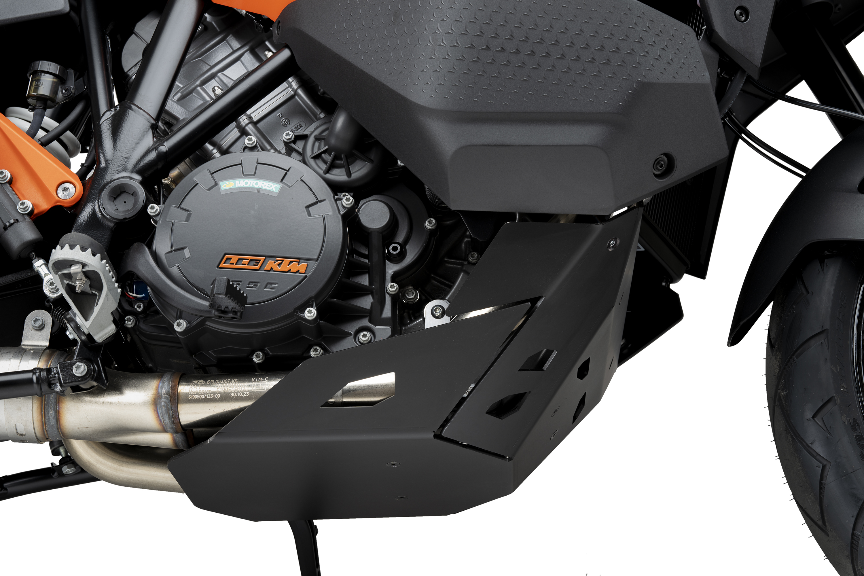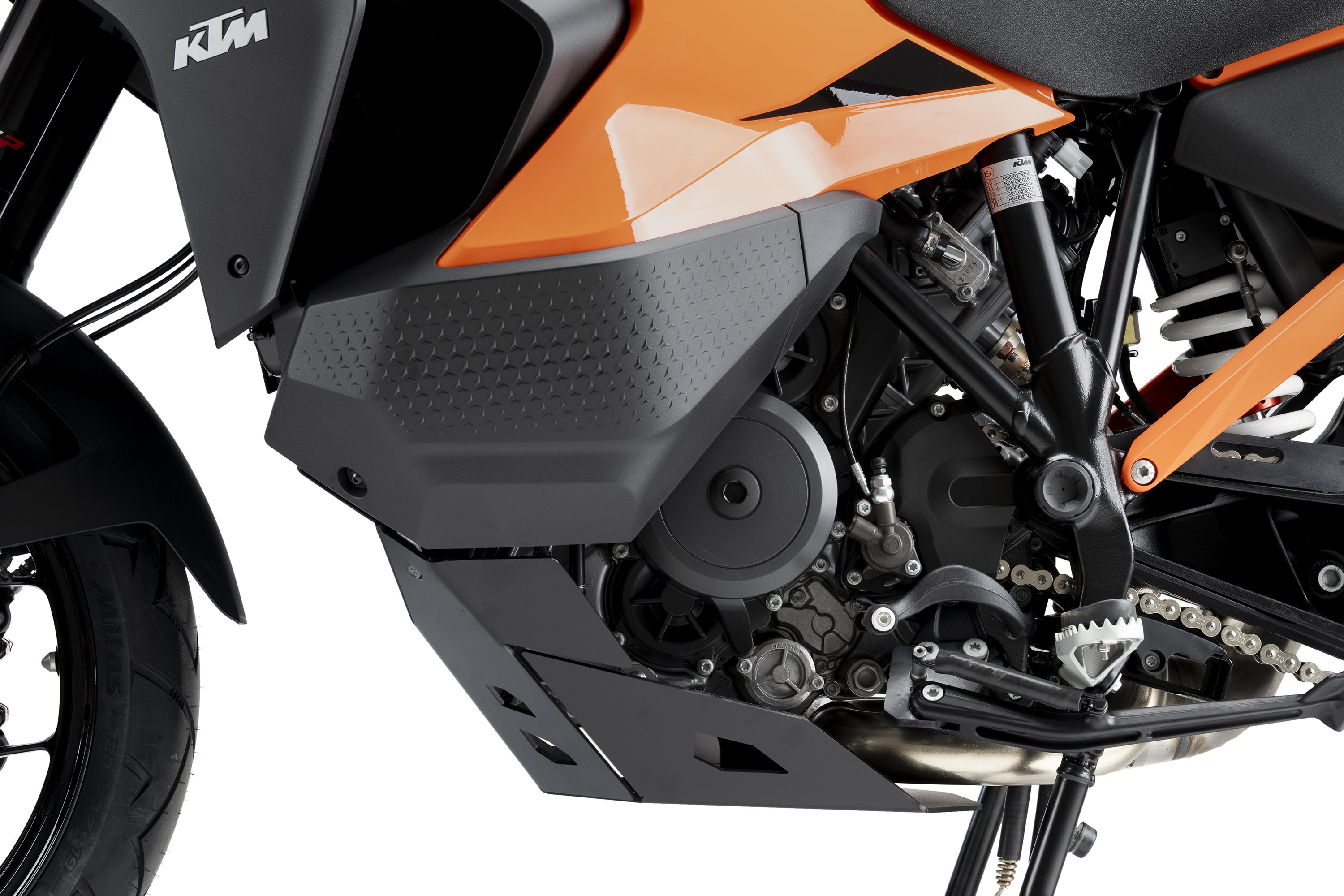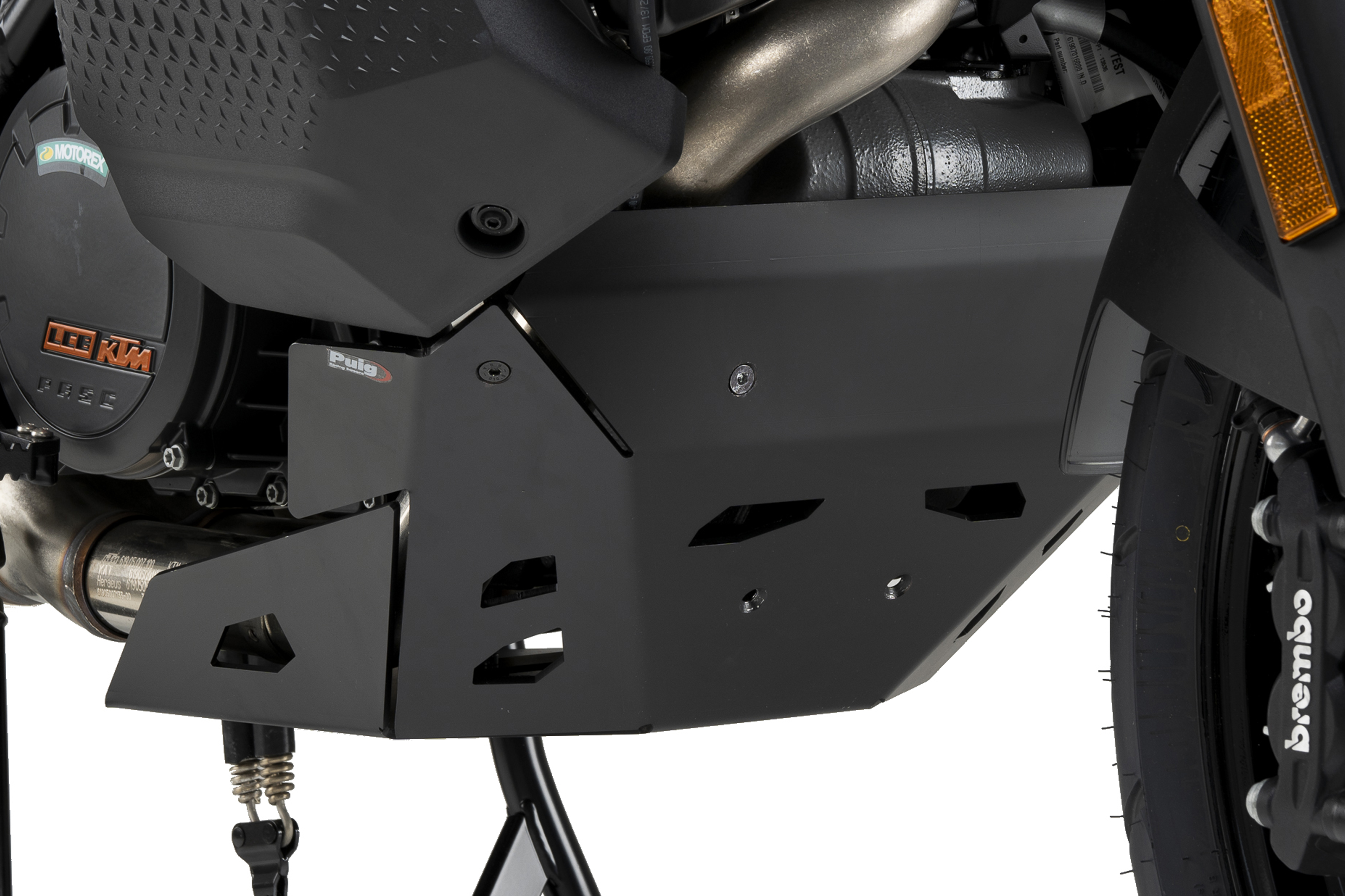 La part inferior del protector és totalment plana, cosa que facilita aixecar la moto al taller mecànic des de la part inferior si és necessari, i disposa de forats per garantir una bona refrigeració i evacuar l'aigua, fang, o petites pedres acumulades. A més de facilitar l'operació del canvi d'oli evitant treure'n el protector.