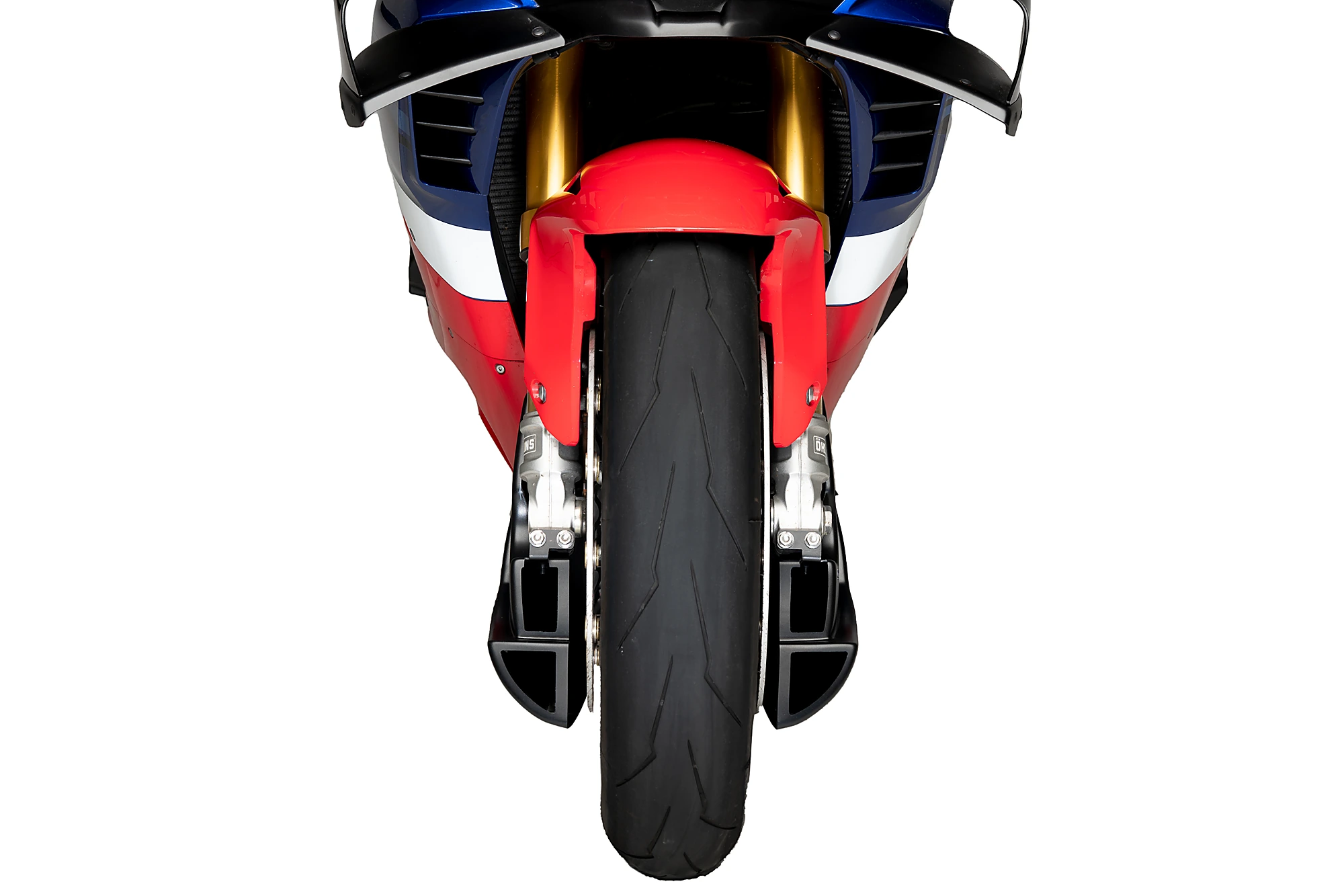 El seu estudiat disseny, a més d'aportar una estètica més esportiva i personalitzada, elimina turbulències a la roda davantera en crear una tapa lenticular parcial que afavoreix l'aerodinàmica de la moto, sobretot a altes velocitats. Inclou suports de resistent i lleuger alumini acabats en un discret color negre texturitzat.