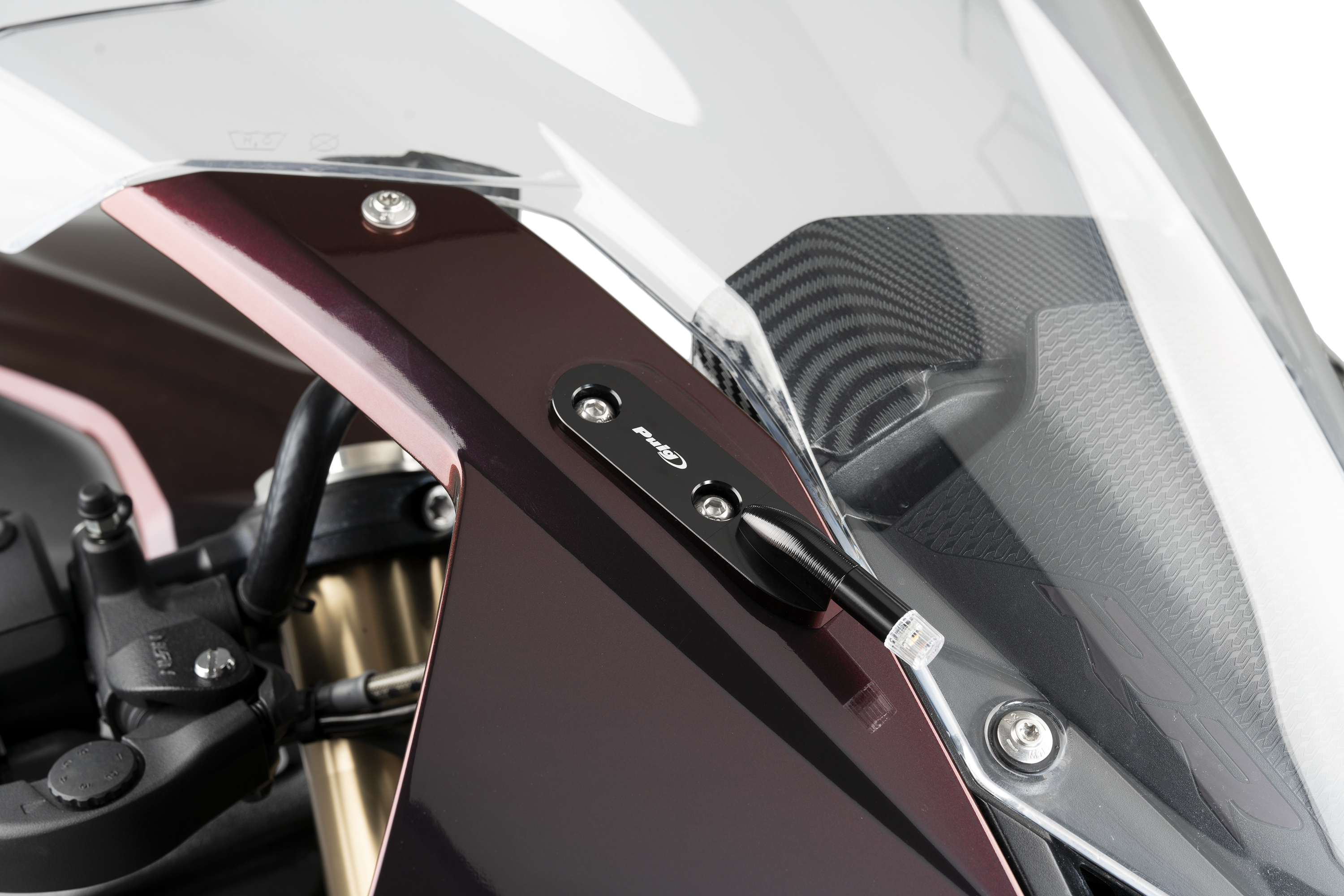 Dissenyat per a motos esportives que incorporen l'intermitent al retrovisor i desitgen muntar els retrovisors al contrapès.