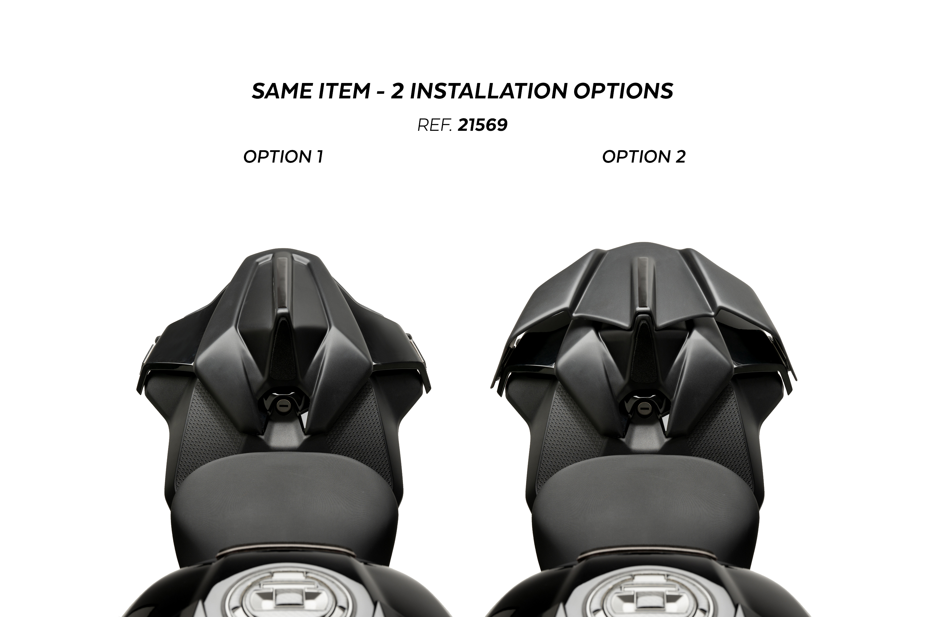 El seu estudiat disseny té com a objectiu alleugerir la part posterior, simplificant les línies de la moto. A més, a la zona davantera de la cua se li incorpora una espuma de neoprè de 4 mm de gruix en color negre, per millorar el confort del pilot quan es resguarda a altes velocitats.