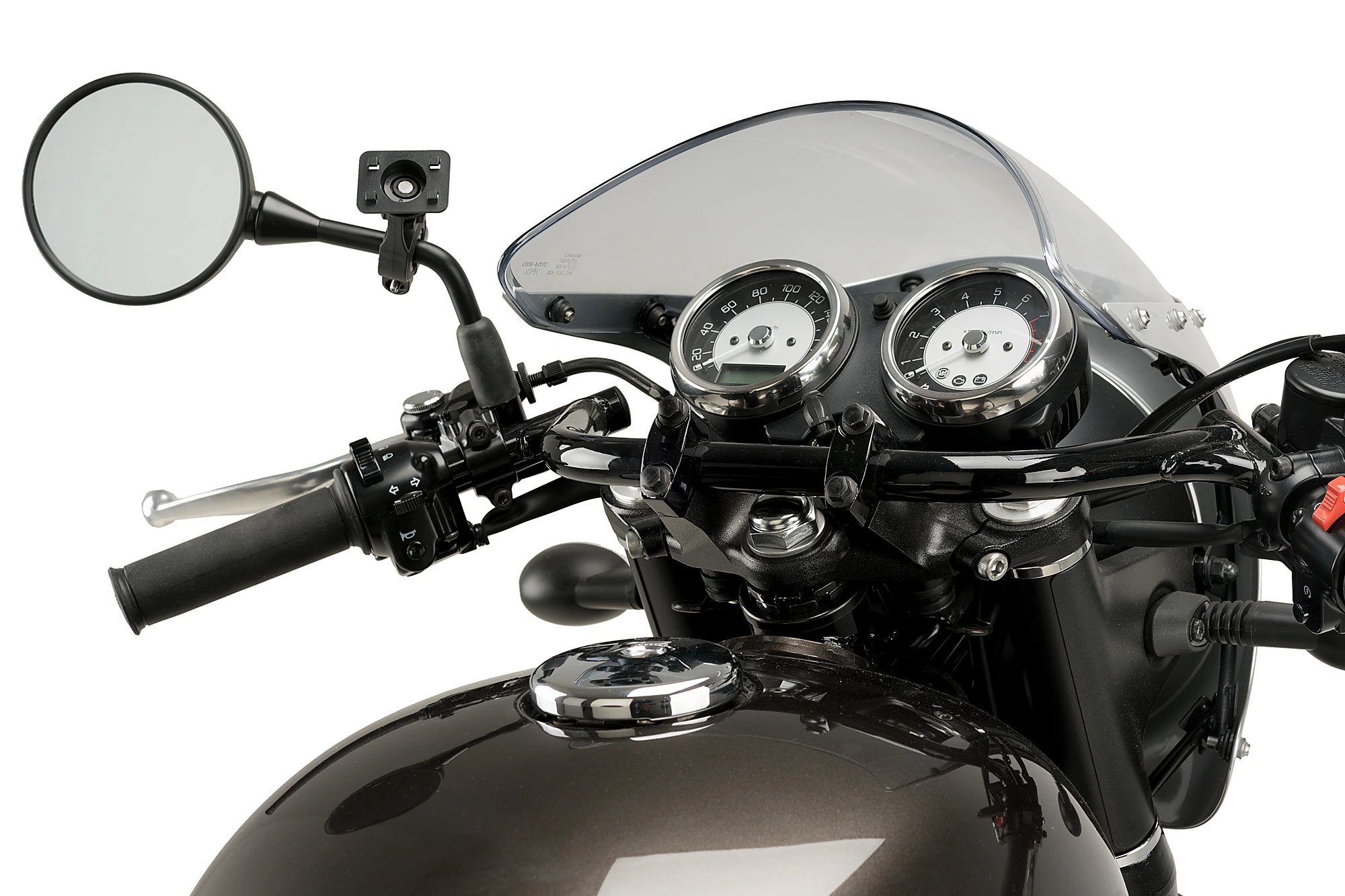 Pots muntar el portateléfono a la base de retrovisor, la vareta de retrovisor, al manillar i en la tija de la moto on quedarà més immobilitzat davant de possibles impactes o sots de la carretera.