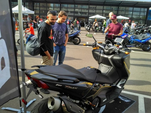 Puig presented a T-MAX full equipped with our accessories designed specially for this best-seller maxiscooter: parking brake lever, shaft ring trim, shaft cover, tensors for rear wheel, base caps for mirrors, mirror support to lever axle, etc...