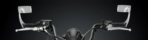 Sein universeller Befestigungsmechanismus ermöglicht es, den Kopf des Spiegels in einer Position oberhalb oder unterehalb des Lenkers zu befestigen. Dank des Kugelgelenks hinter der reflektierenden Oberfläche können Sie den Spiegel während der Fahrt und ohne Werkzeug einstellen.