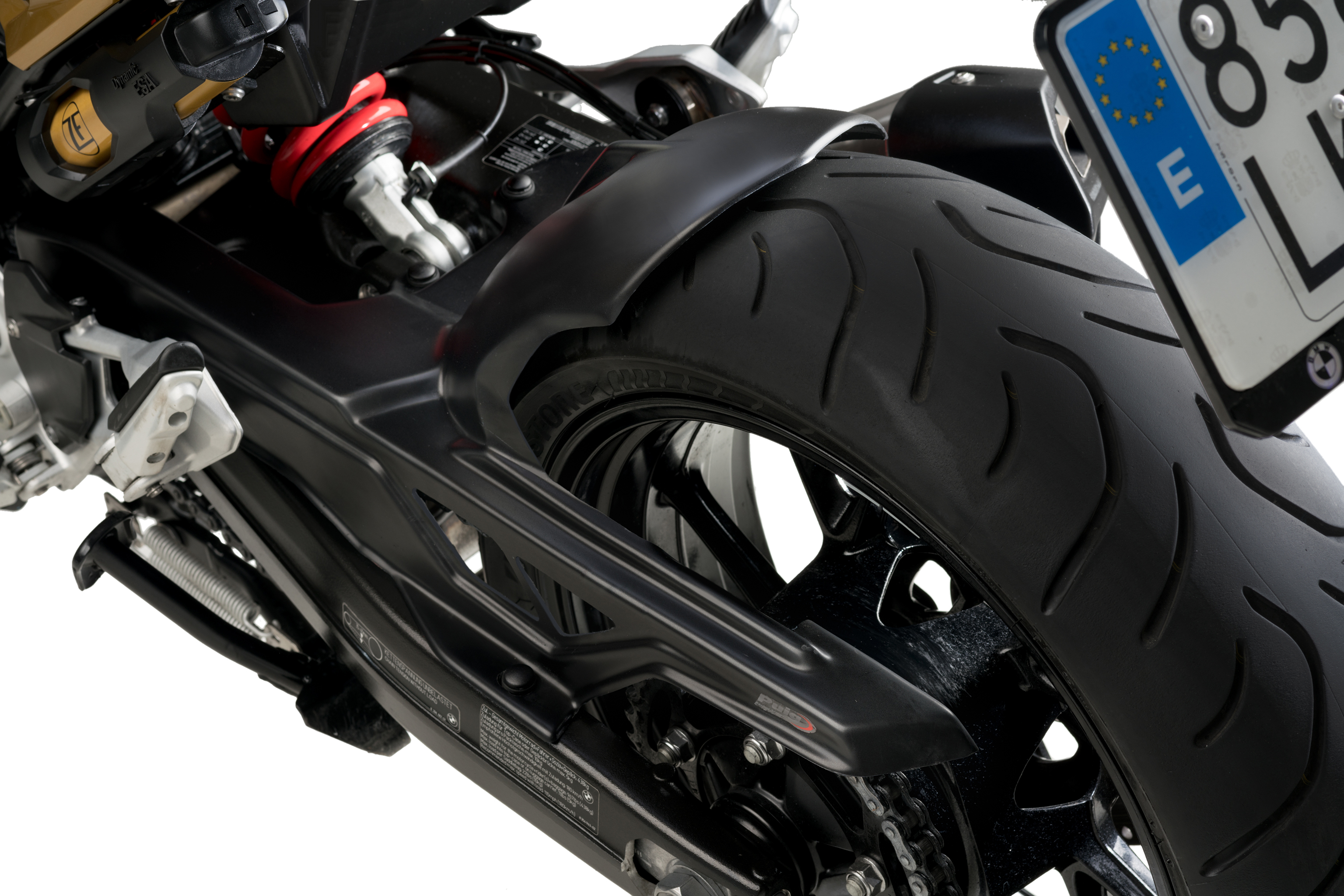 Mit seinen aggressiven Linien verleiht die Hinterradabdeckung Ihrer BMW neben dem Schutz auch ein neues, aggressiveres und stilvolleres Design.