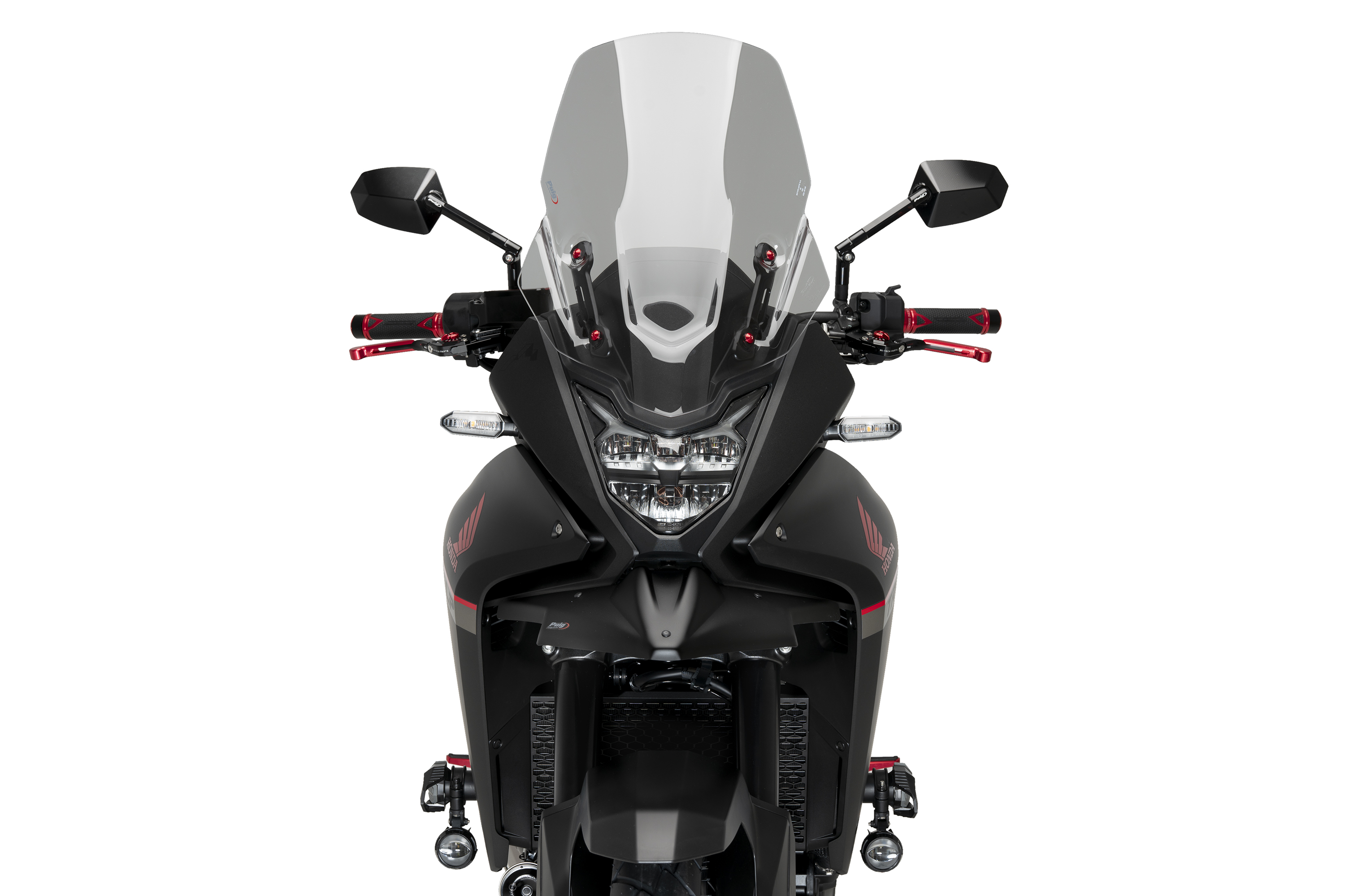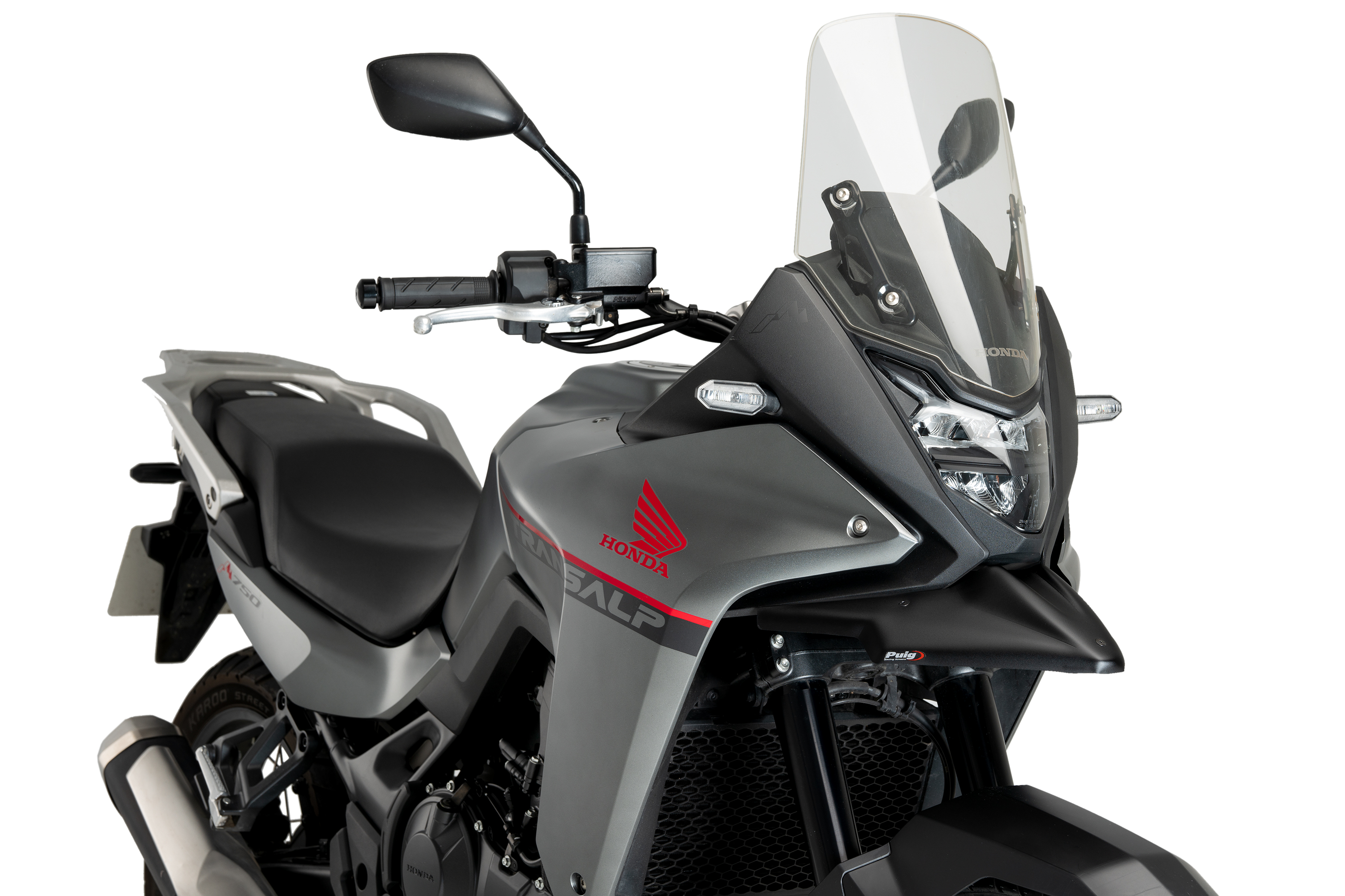 Seine schlichten und eleganten Linien passen perfekt zum Design des Motorrads und verlängern seine Formen auf natürliche Weise, um sich vollständig in die Ästhetik des vielseitigen Trailbikes von Honda zu integrieren.