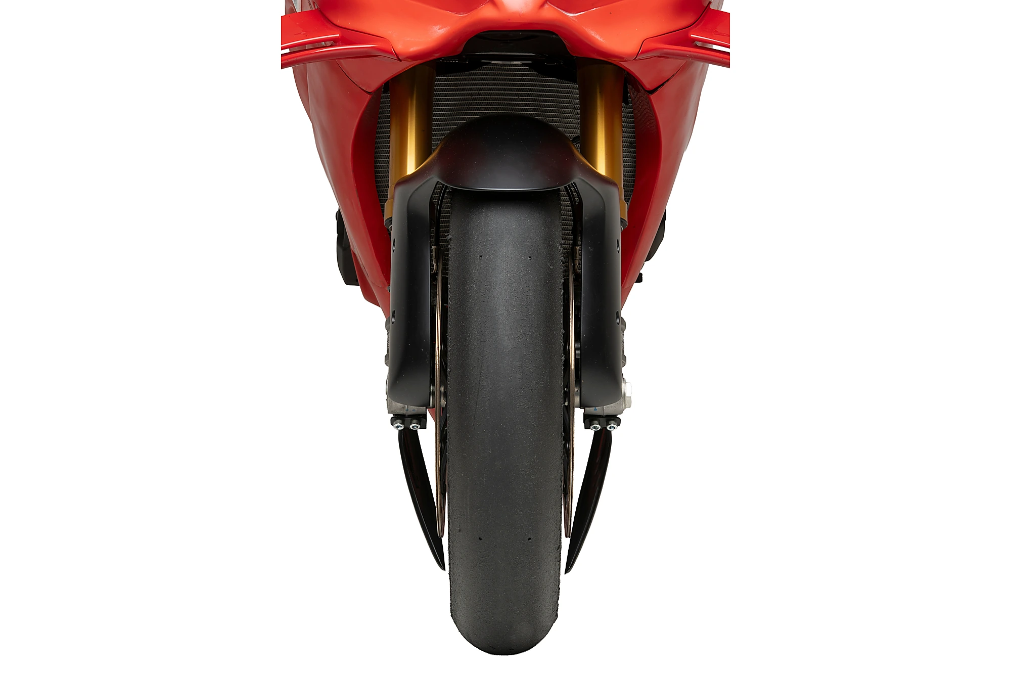 Dieses Element wurde entwickelt, um die Turbulenzen rund um das Vorderrad zu reduzieren und ein stabileres aerodynamisches Verhalten des Motorrads zu erreichen. Dadurch wird eine präzisere und kontrolliertere Fahrweise ermöglicht, insbesondere bei hohen Geschwindigkeiten oder unter anspruchsvollen Fahrbedingungen.