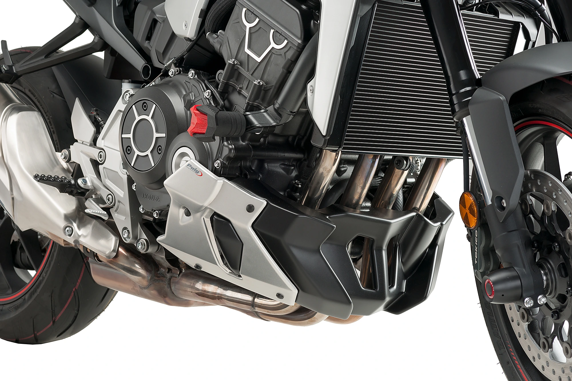 Schützen Sie einen der empfindlichsten Stellen Ihres Motorrads mit dem Puig-Motorspoilern.