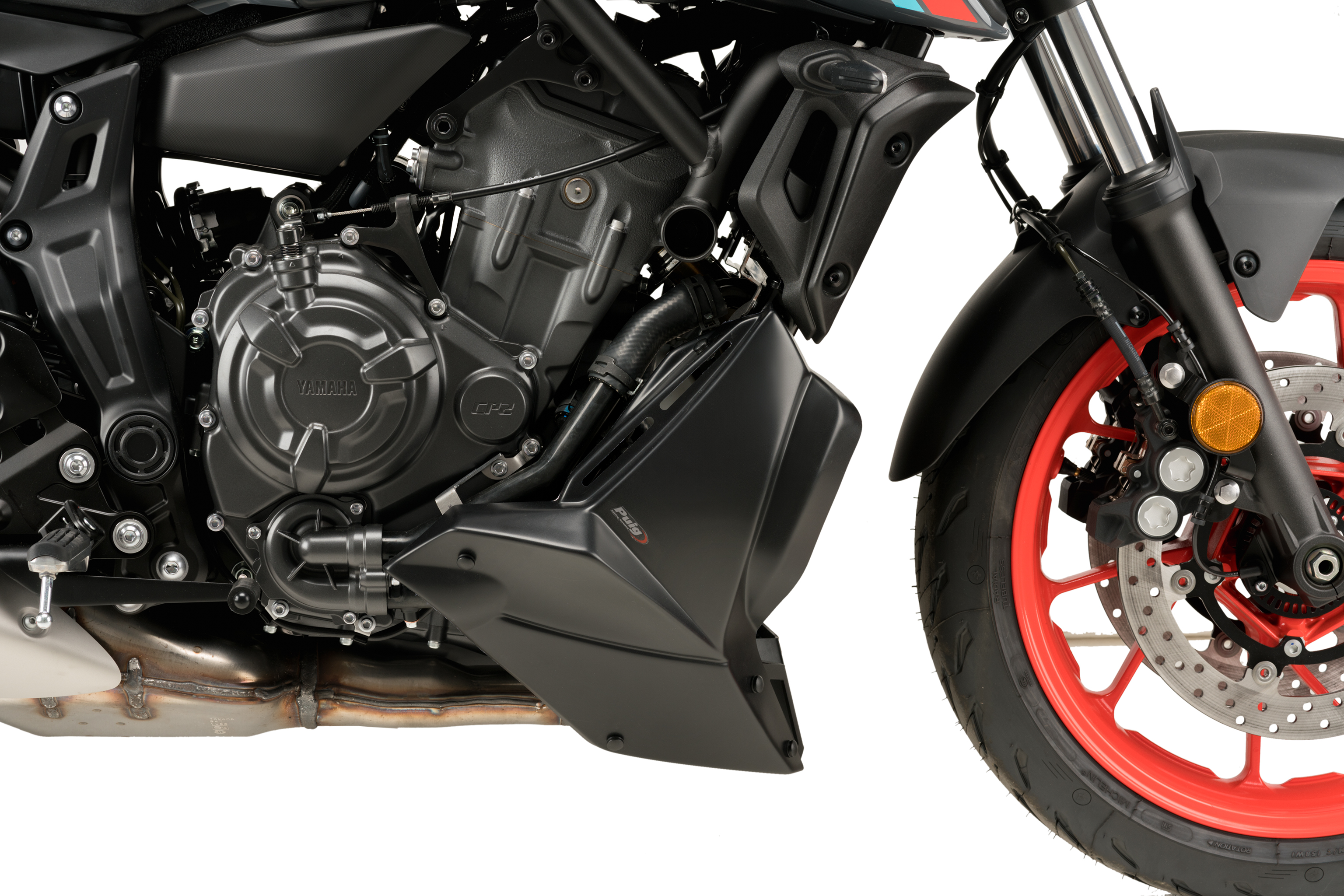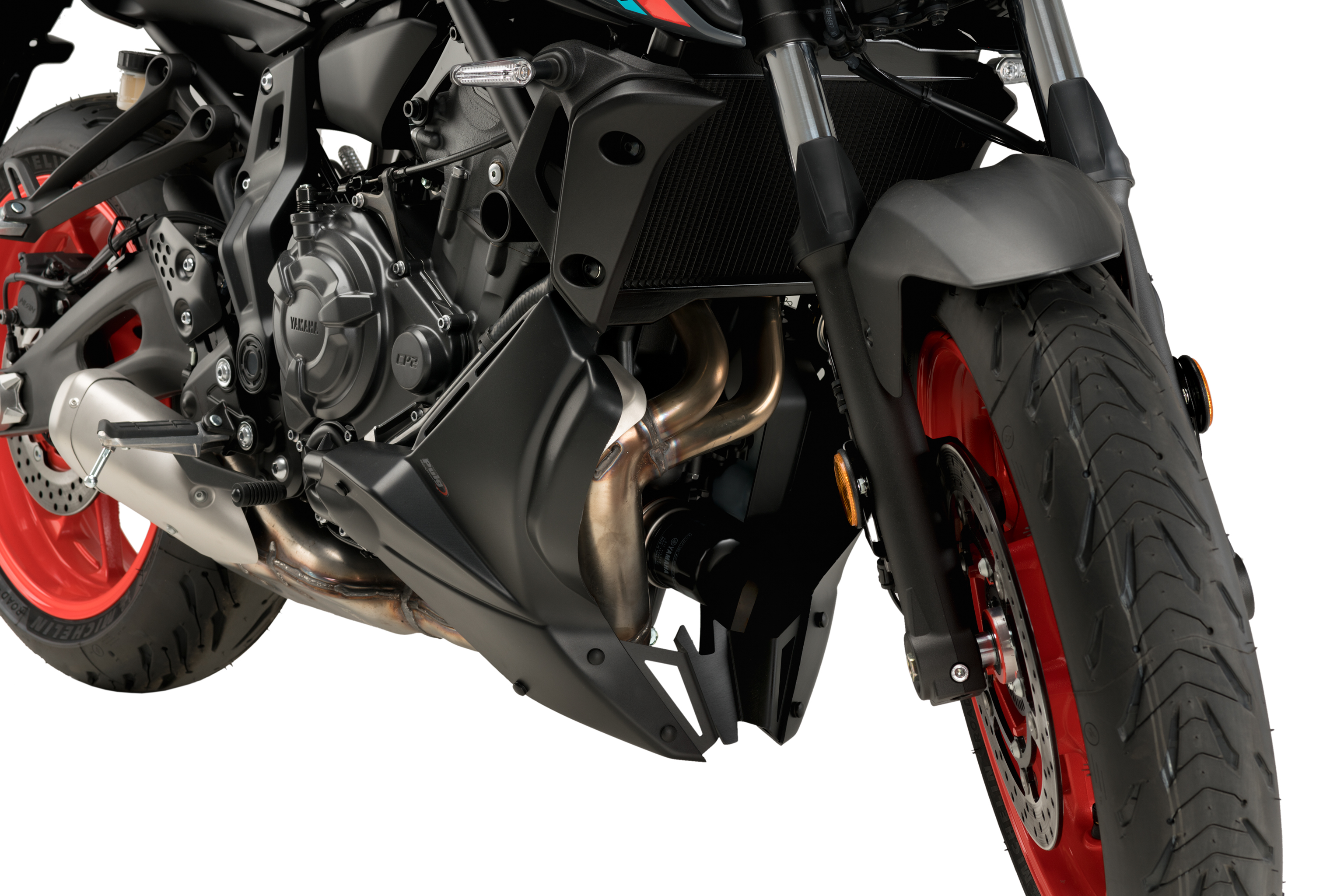 Der neue Puig-Motorspoiler für die Yamaha MT-07 2021 ist das Ergebnis einer großartigen Arbeit der Designer des katalanischen Herstellers mit dem klaren Ziel, eines der am wenigsten ästhetischen Teile dieses Motorradmodells, den Katalysator für den Auspuff, zu schützen, abzudecken und zu verbergen.