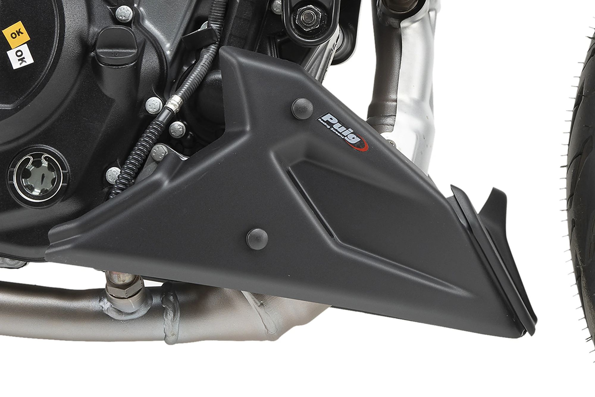 Schützen Sie einen der empfindlichsten Stellen Ihres Motorrads mit dem Puig-Motorspoilern.