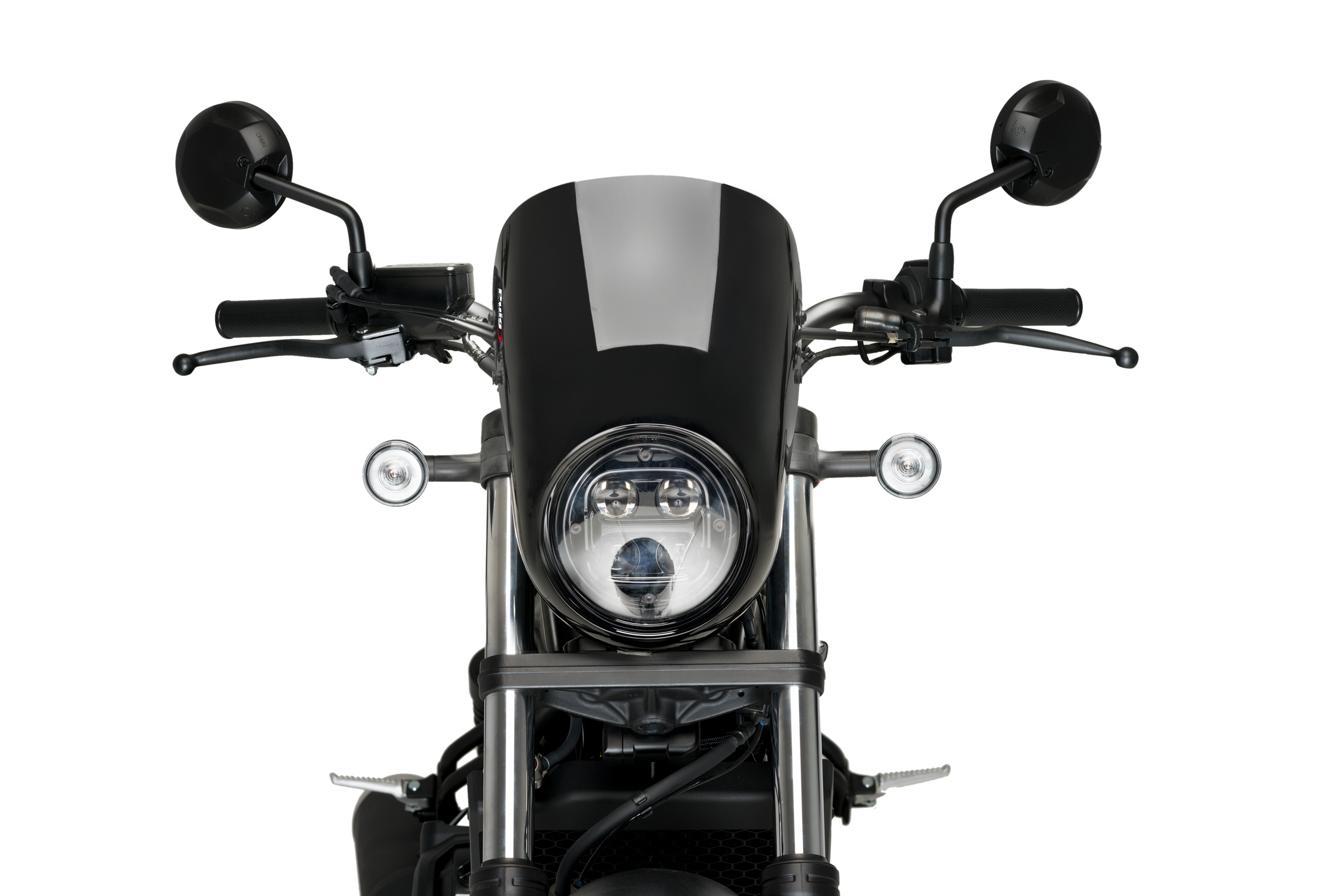 Hergestellt aus sehr stoßfesten und aerodynamischen Materialien, ist dieses Teil für Harley Davidson, Indian und japanische Motorradmodelle erhältlich. Es wird speziell für jedes Motorradmodell hergestellt und passt sich perfekt an den runden oder geformten Scheinwerfer an, wie z.B. für das Modell Vulcan S.