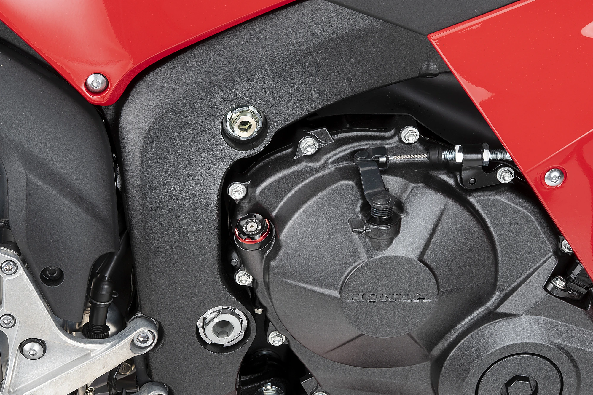 Vom rein funktionalen Originalteil zum Designteil, das sich in der Motorbaugruppe auszeichnet. Der markante Renncharakter wird aufgrund seiner reduzierten Abmessungen und Bearbeitungslinien durch die Eleganz eines schwarz eloxierten Sets und eines farbigen Rings ergänzt, der es ermöglicht, sich in den Rest des Motorrads einzufügen.