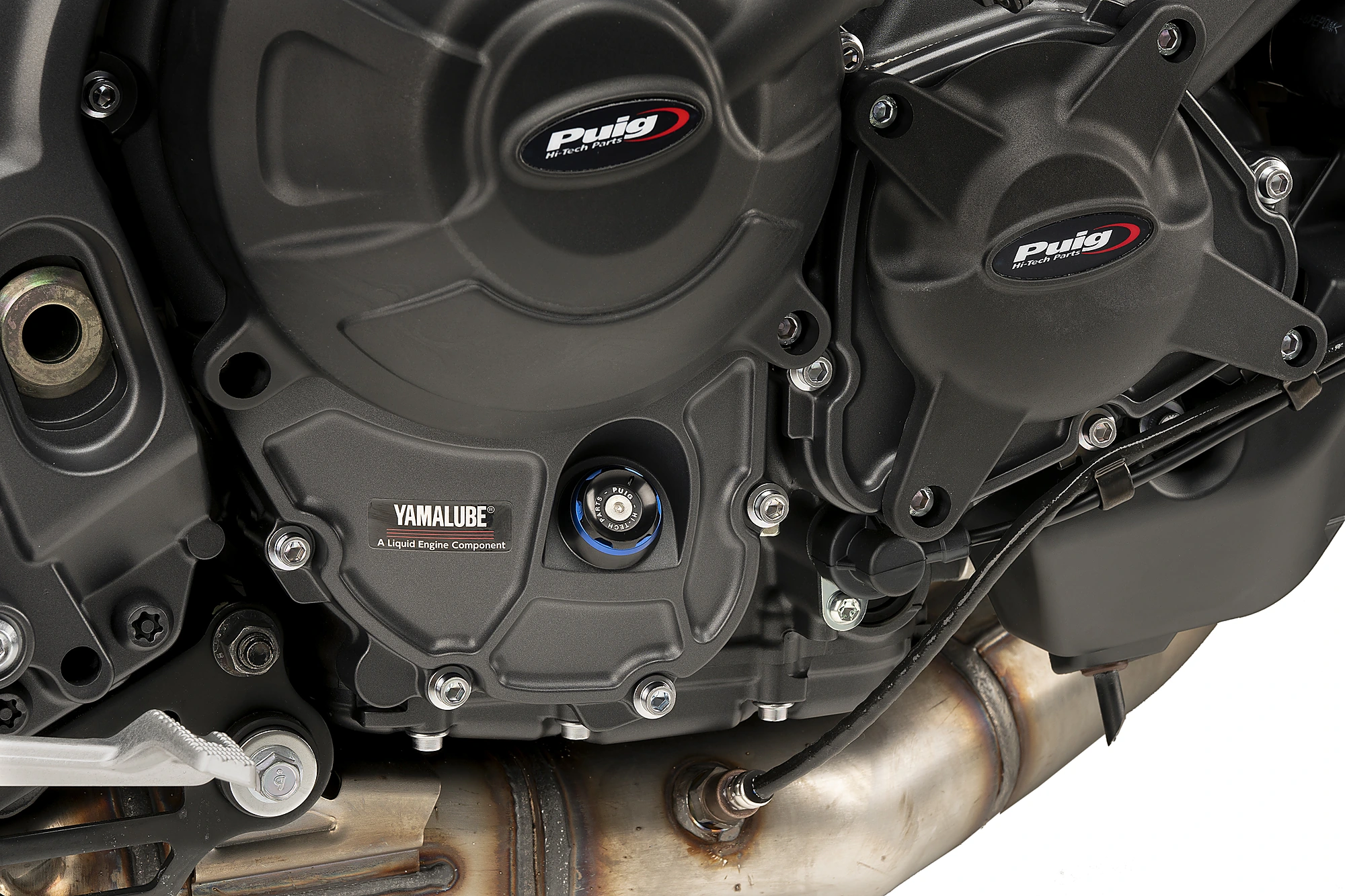 Vom rein funktionalen Originalteil zum Designteil, das sich in der Motorbaugruppe auszeichnet. Der markante Renncharakter wird aufgrund seiner reduzierten Abmessungen und Bearbeitungslinien durch die Eleganz eines schwarz eloxierten Sets und eines farbigen Rings ergänzt, der es ermöglicht, sich in den Rest des Motorrads einzufügen.