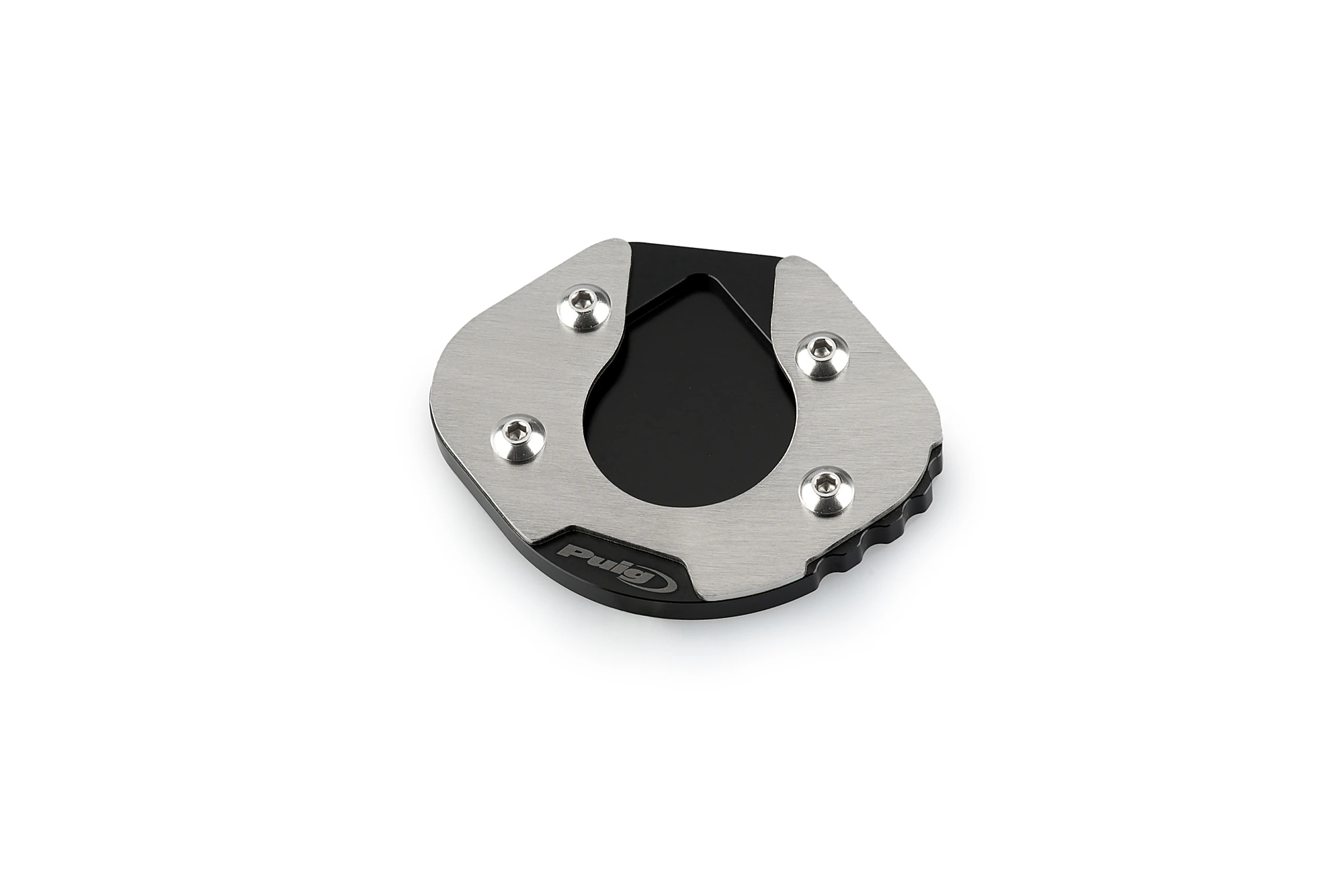 Verleihen Sie Ihrem Motorrad mit der neuen Fußstandverbreiterung von PUIG mehr Stabilität und Auflagefläche. Entwickelt wurde die Verbreiterung des Ständers um das Risiko von Stürzen während es gepark ist zu verringern. Sie ist 100% breiter als die originale und vereinfacht das Abstellen auf unebenen Böden. Die eine Hälfte ist aus rostfreiem Stahl, die andere aus Aluminium angefertigt. Das Aluminium wurde aus einem großem Block gefräßt und anschließend eloxiert. Die Materialien bieten eine hohe Widerstandsfähigkeit bei gleichzeitig geringem Gewicht (110-160g je nach Modell). Durch die Verbreiterung von PUIG wird Ihr Motorrad nichts mehr so leicht umhauen.