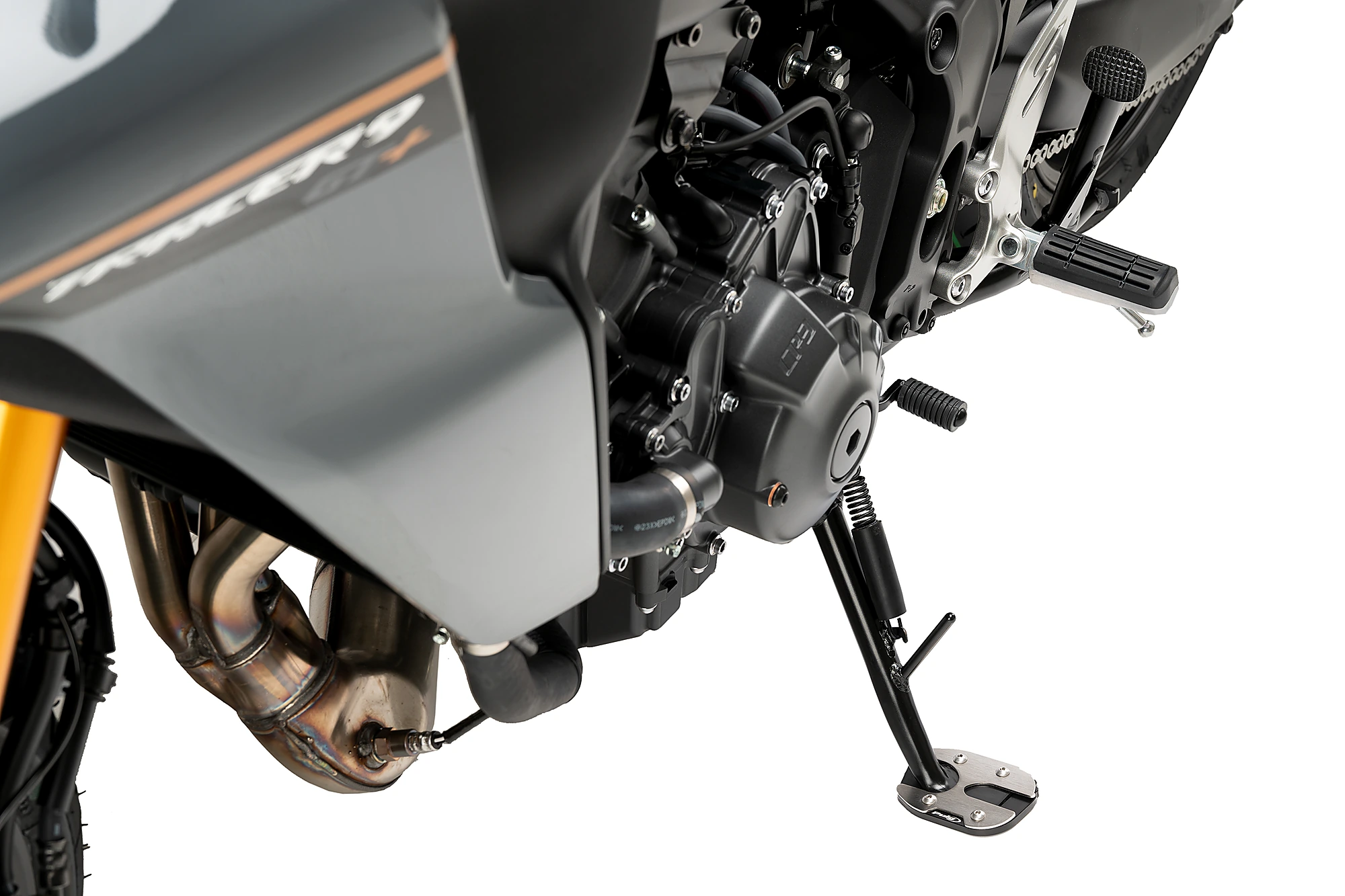 Verleihen Sie Ihrem Motorrad mit der neuen Fußstandverbreiterung von PUIG mehr Stabilität und Auflagefläche. Entwickelt wurde die Verbreiterung des Ständers um das Risiko von Stürzen während es gepark ist zu verringern. Sie ist 100% breiter als die originale und vereinfacht das Abstellen auf unebenen Böden. Die eine Hälfte ist aus rostfreiem Stahl, die andere aus Aluminium angefertigt. Das Aluminium wurde aus einem großem Block gefräßt und anschließend eloxiert. Die Materialien bieten eine hohe Widerstandsfähigkeit bei gleichzeitig geringem Gewicht (110-160g je nach Modell). Durch die Verbreiterung von PUIG wird Ihr Motorrad nichts mehr so leicht umhauen.