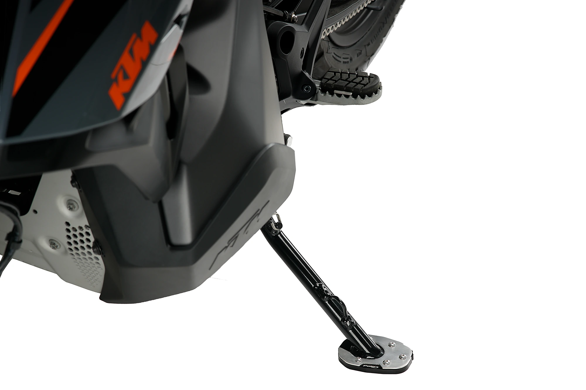 Verleihen Sie Ihrem Motorrad mit der neuen Fußstandverbreiterung von PUIG mehr Stabilität und Auflagefläche. Entwickelt wurde die Verbreiterung des Ständers um das Risiko von Stürzen während es gepark ist zu verringern. Sie ist 100% breiter als die originale und vereinfacht das Abstellen auf unebenen Böden. Die eine Hälfte ist aus rostfreiem Stahl, die andere aus Aluminium angefertigt. Das Aluminium wurde aus einem großem Block gefräßt und anschließend eloxiert. Die Materialien bieten eine hohe Widerstandsfähigkeit bei gleichzeitig geringem Gewicht (110-160g je nach Modell). Durch die Verbreiterung von PUIG wird Ihr Motorrad nichts mehr so leicht umhauen.