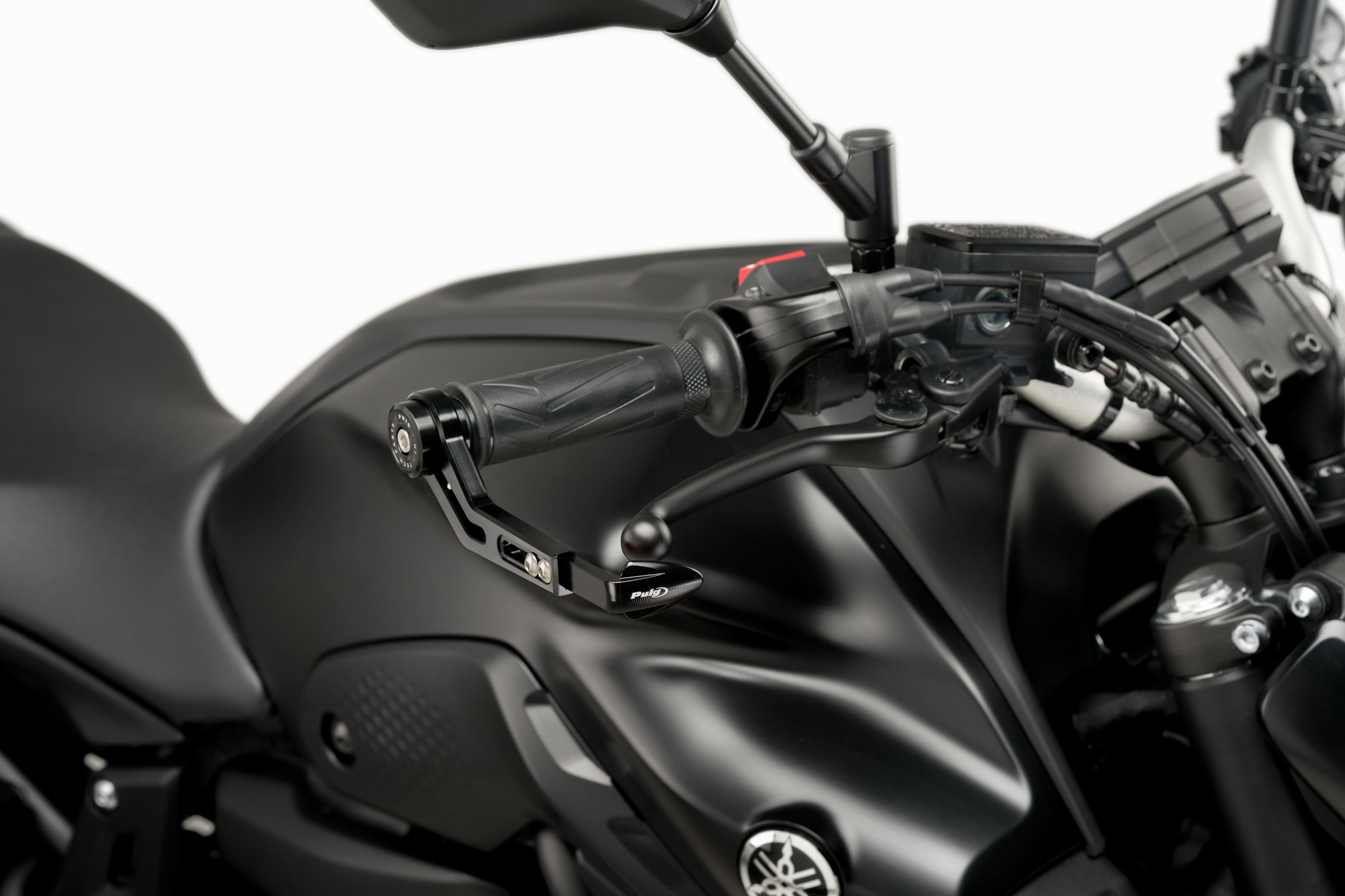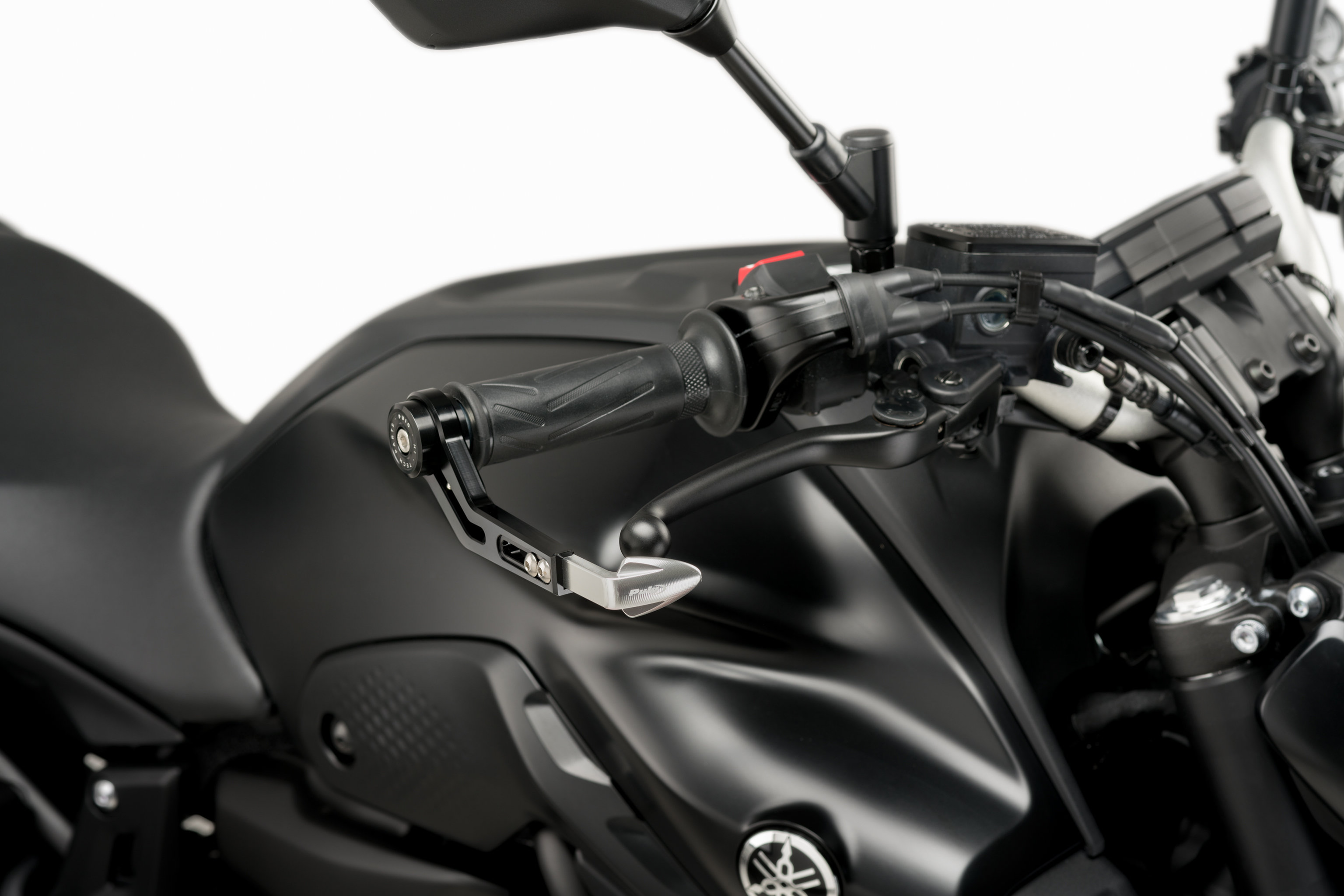 Mit dem Design des Bremshebelschutzes zeigt PUIG, dass der Schutz der Fahrer mit dem eigentlichen Design des Motorrades zusammengehen kann. Die Priorität lag darauf, den Bremshebelschutz so schlicht wie möglich zu halten. Das System hinter den Bremshebeln ist sehr ausgeklügelt. Es ist in alle vier Richtungen verstellbar. Oben-Unten und Rechts-Links.