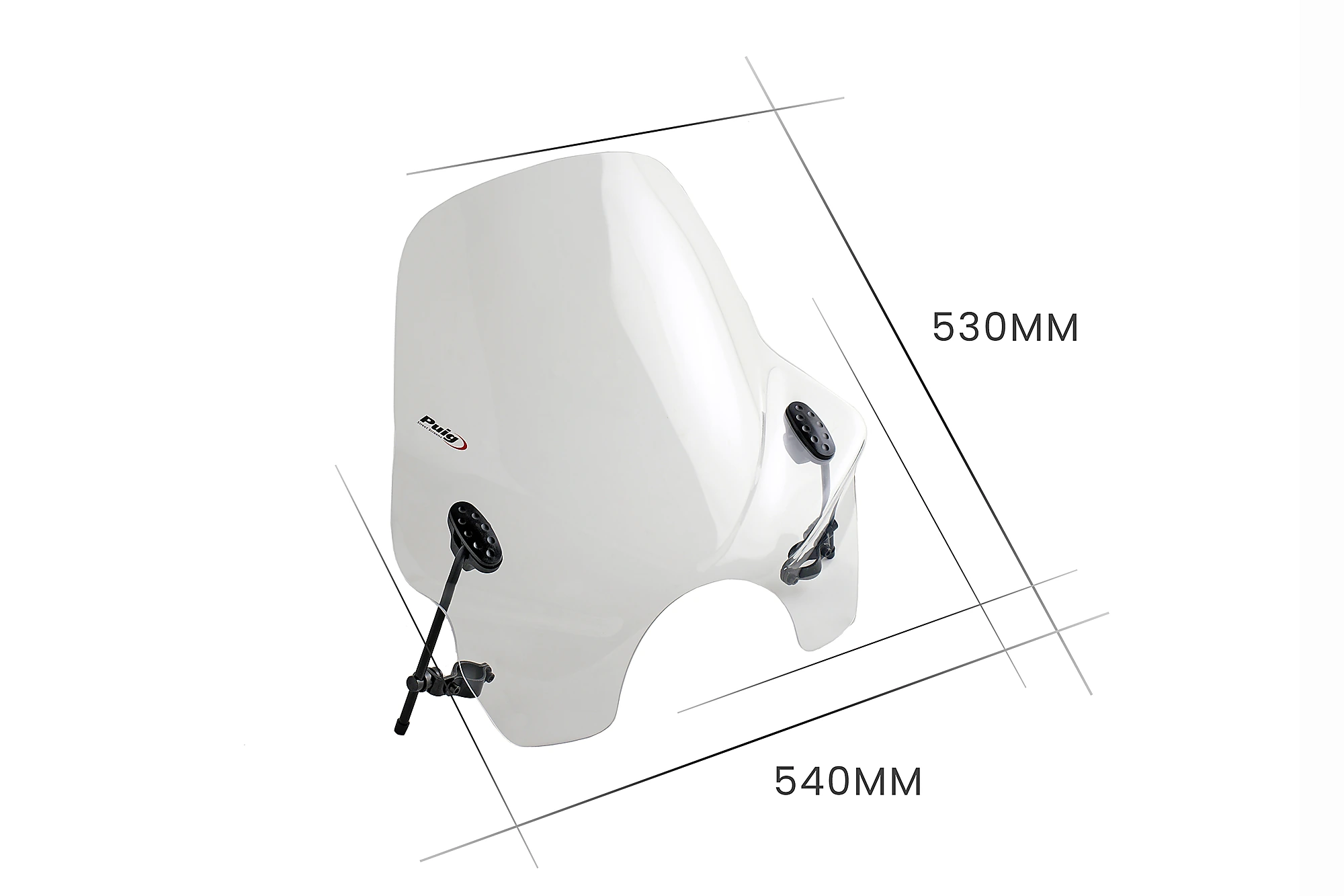 Die Touring I Windschutzscheibe ist aus stoßfestem Acryl gefertigt, das gegen mögliche Stöße resistent ist. Sie bietet ebenfalls idealen Schutz vor der Kälte.