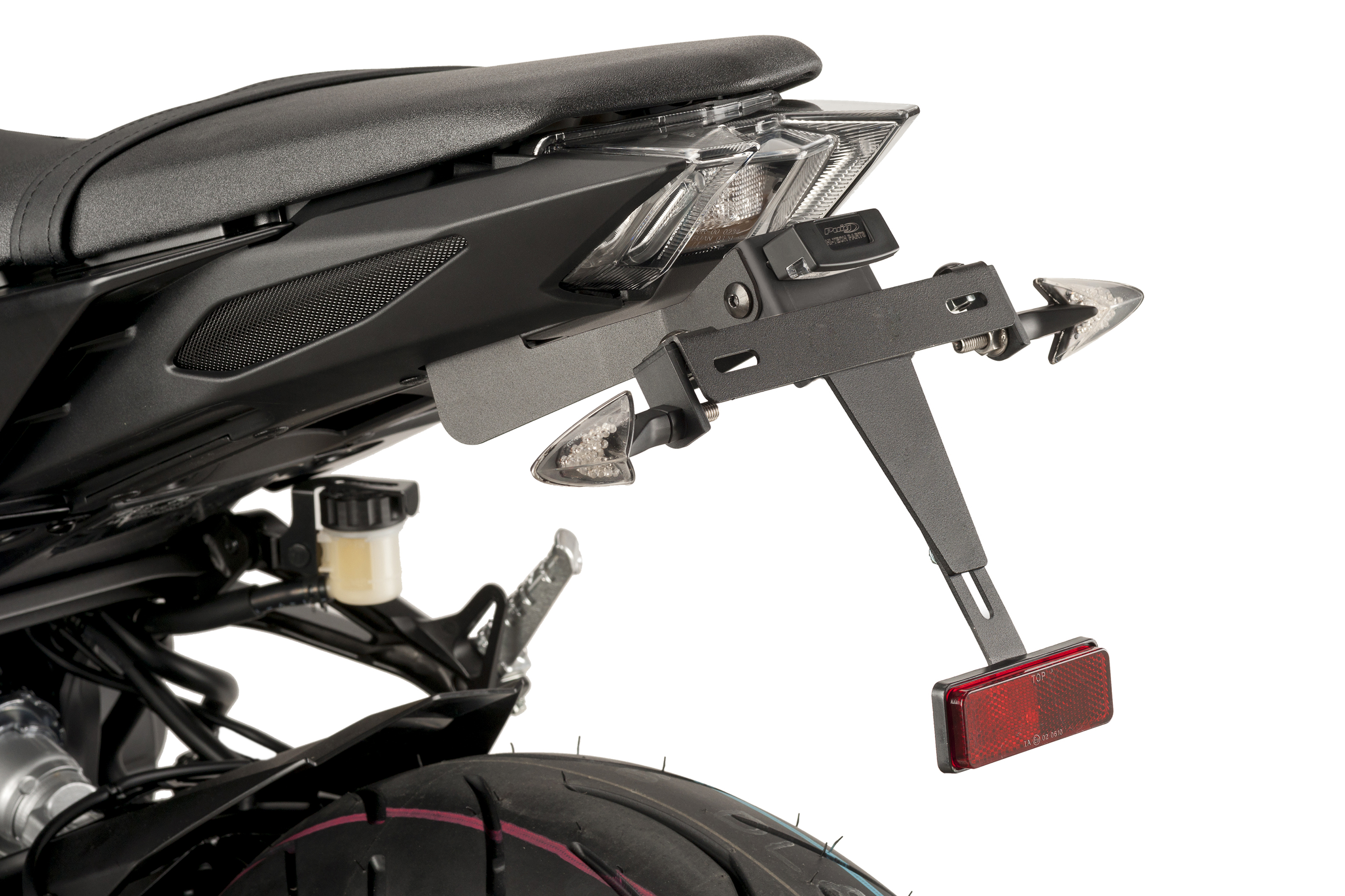 Ersetzen Sie den originalen Kennzeichenhalter Ihres Motorrads durch den Puig-Kennzeichenhalter, der dank seiner erhöhten Position Ihrem Motorrad eine sportliche Optik verleiht. Das Set kombiniert Stahlteile mit einer Epoxid-Lackierung und Polyamid-Elementen und erreicht so eine deutliche Gewichtsreduzierung im Vergleich zum Originalhalter.