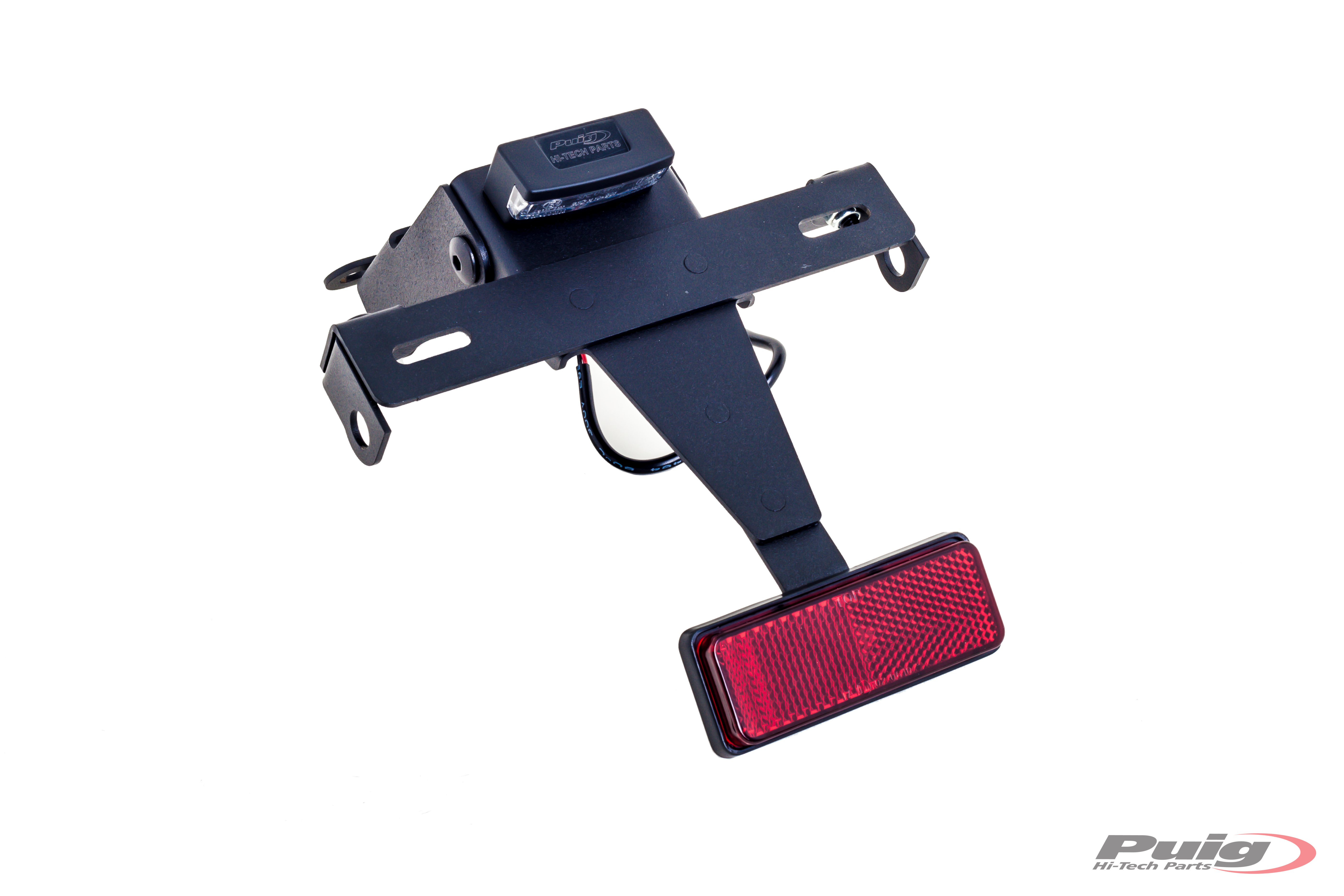 Ersetzen Sie den originalen Kennzeichenhalter Ihres Motorrads durch den Puig-Kennzeichenhalter, der dank seiner erhöhten Position Ihrem Motorrad eine sportliche Optik verleiht. Das Set kombiniert Stahlteile mit einer Epoxid-Lackierung und Polyamid-Elementen und erreicht so eine deutliche Gewichtsreduzierung im Vergleich zum Originalhalter.